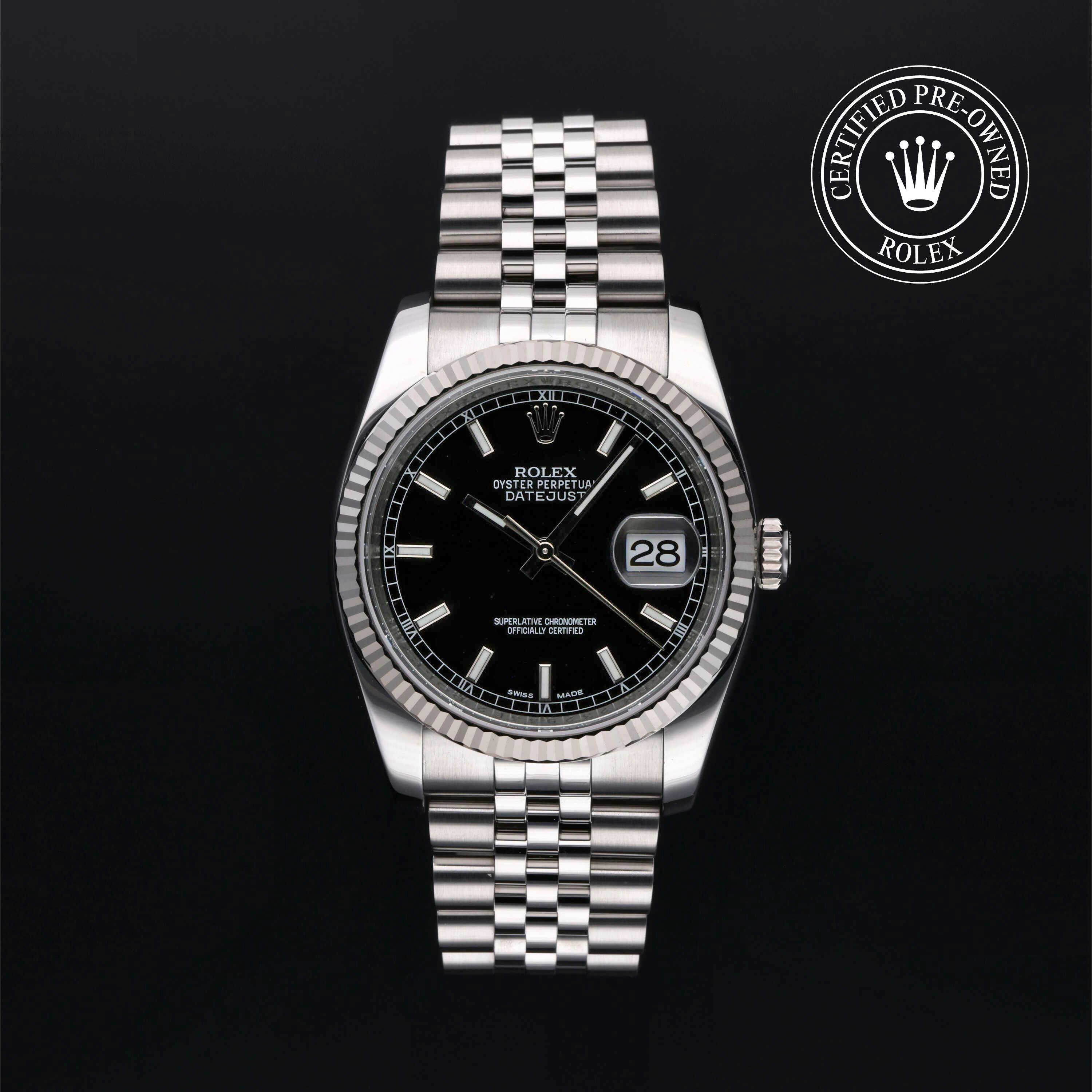 Rolex has introduced rose gold, steel, and two-tone references, known as Rolesor. Though most recognizable with its fluted bezel, the Datejust has also been produced with domed, smooth, and engine-turned bezels. The Datejust collection offers a variety of case sizes for both men and women, including 28mm, 31mm, 34mm, 36mm, and 41mm. Designed in a wide range of metals, dials, textures, bracelets, and marker styles, the Rolex Datejust offers nearly endless configurations, many of which are available on the pre-owned market.