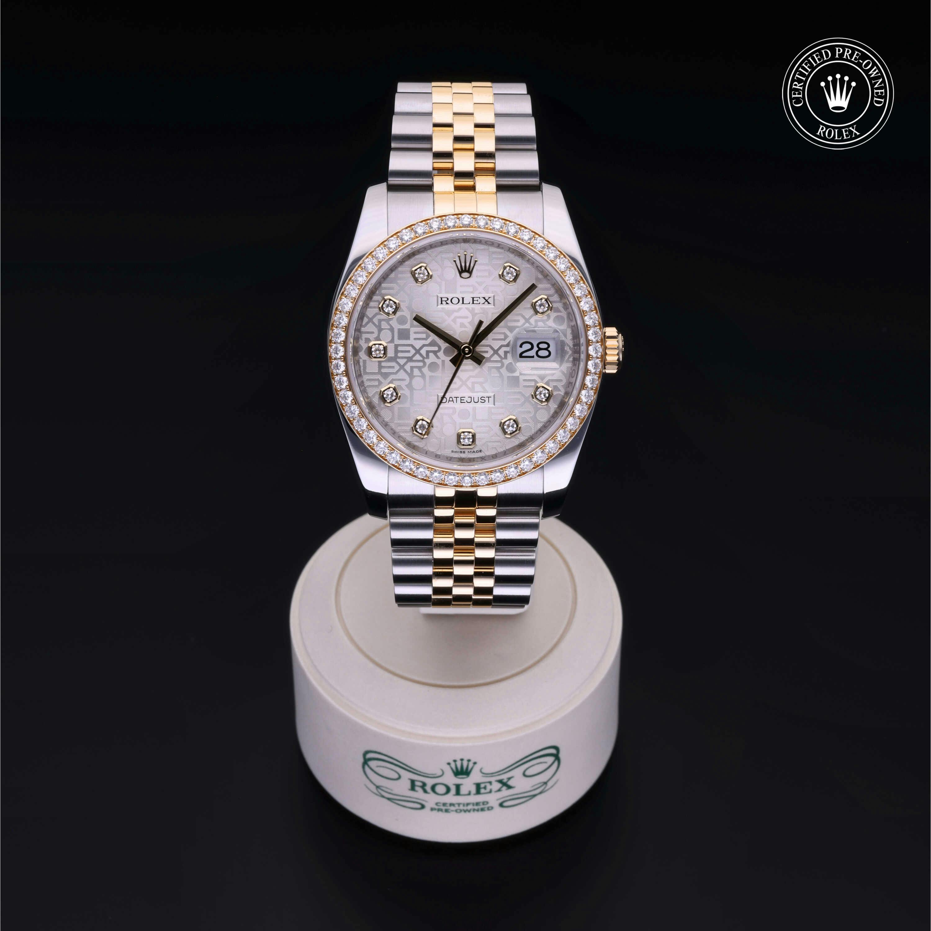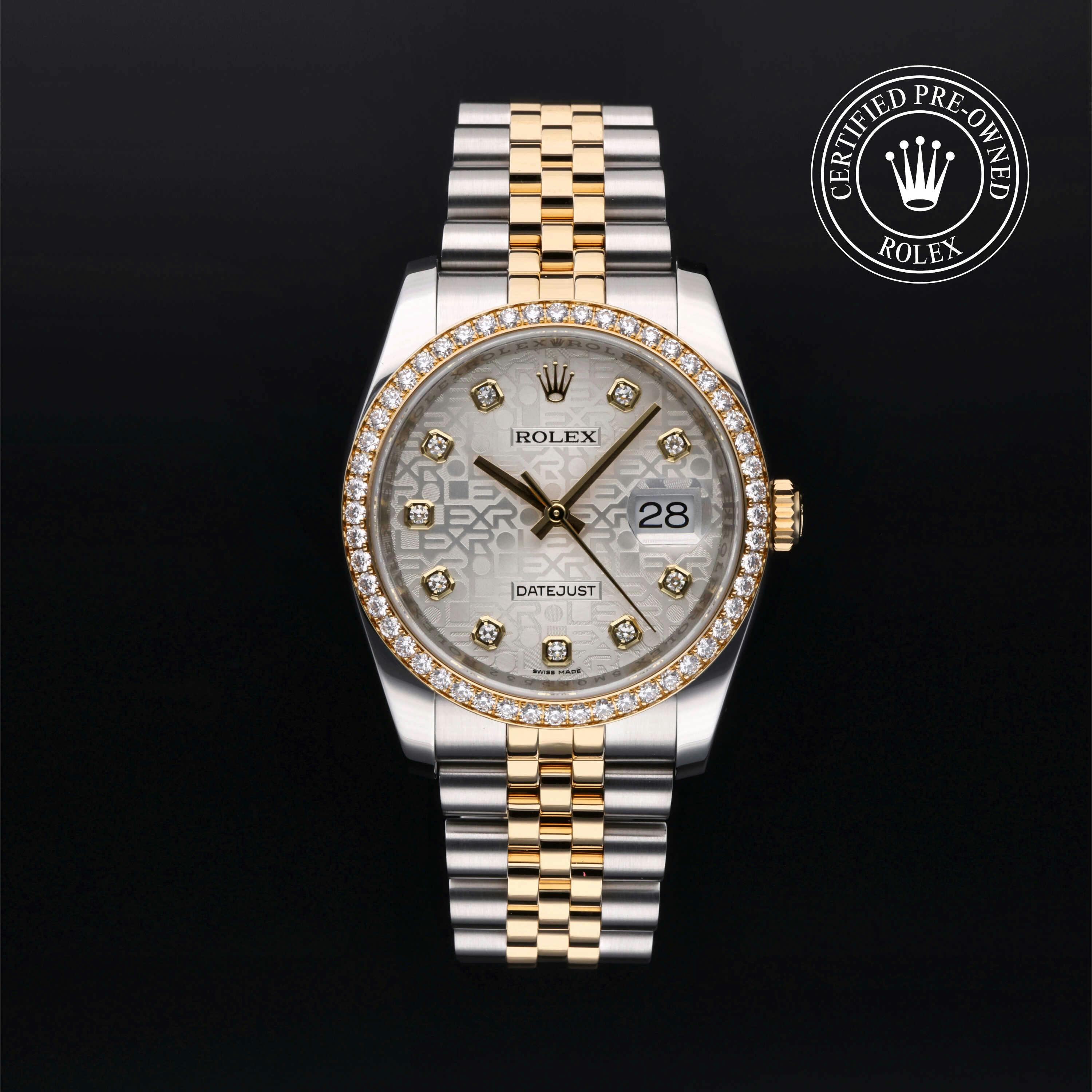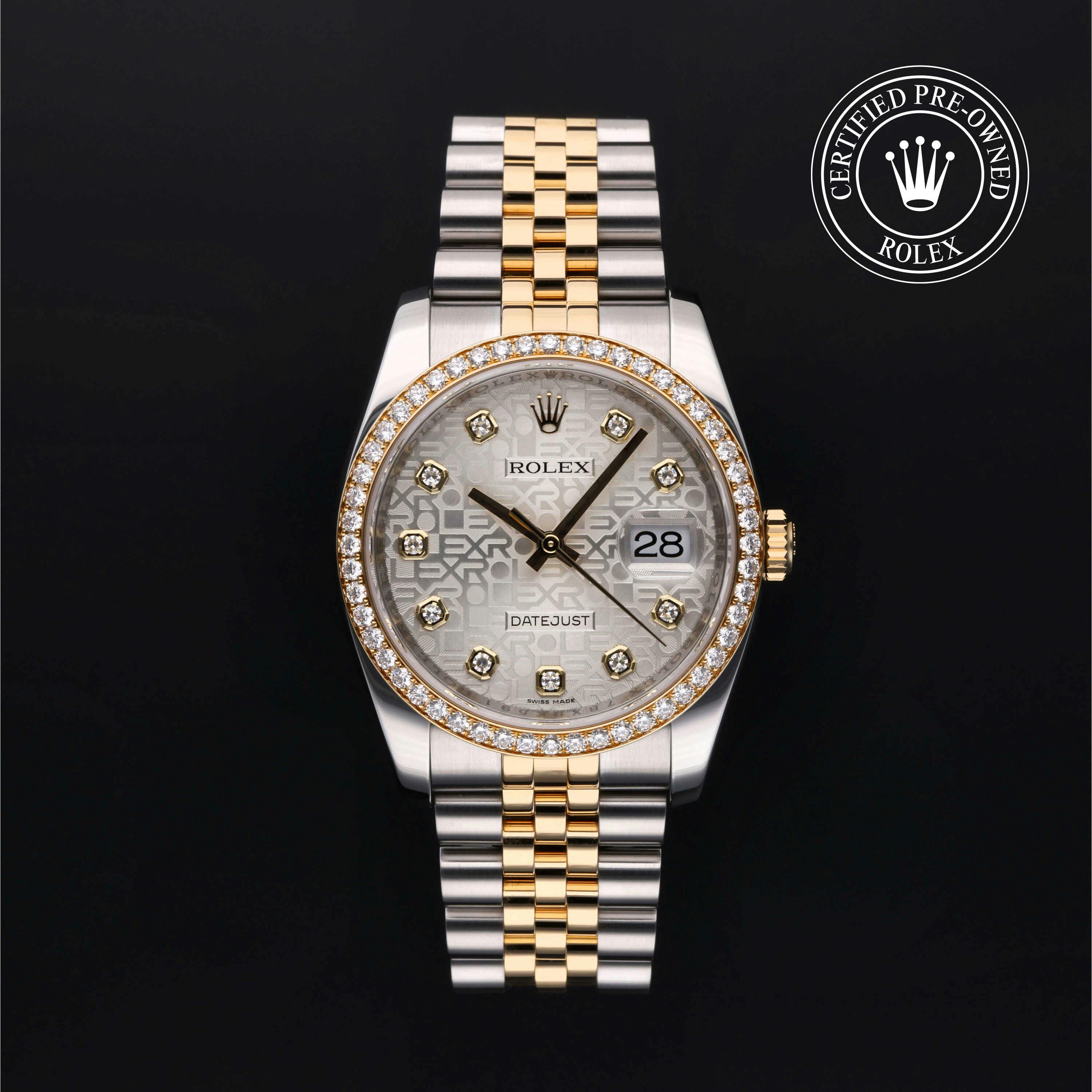 Pre-Owned Rolex Datejust (116243) self - winding automatic watch, features a 36mm stainless steel case surrounding a silver jubilee diamond dial on an 18k yellow gold and stainless steel bracelet with folding buckle. Functions include hours, minutes, seconds and date. This watch has been serviced and does not come with box or papers. Time remaining on the Manufacturer's service warranty!