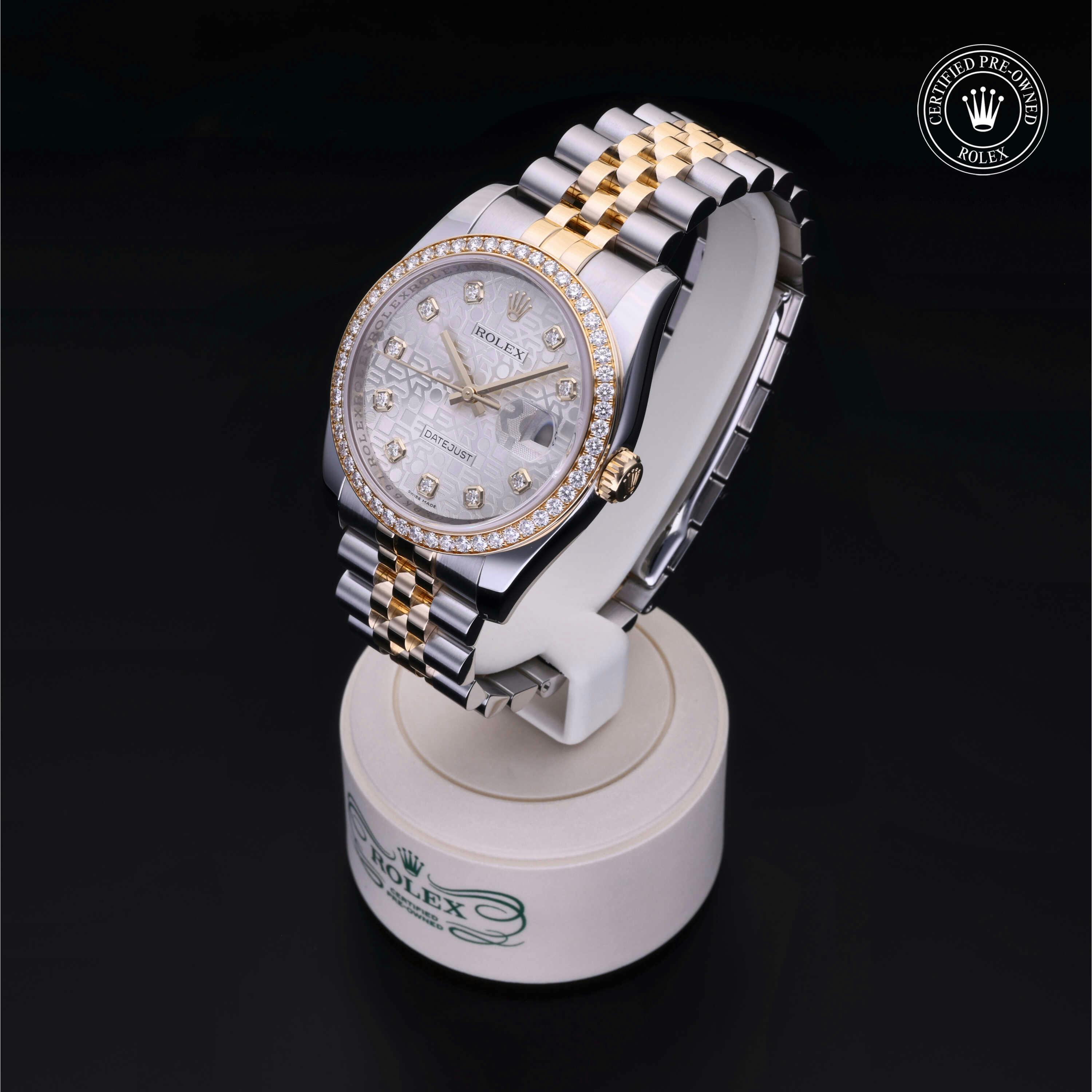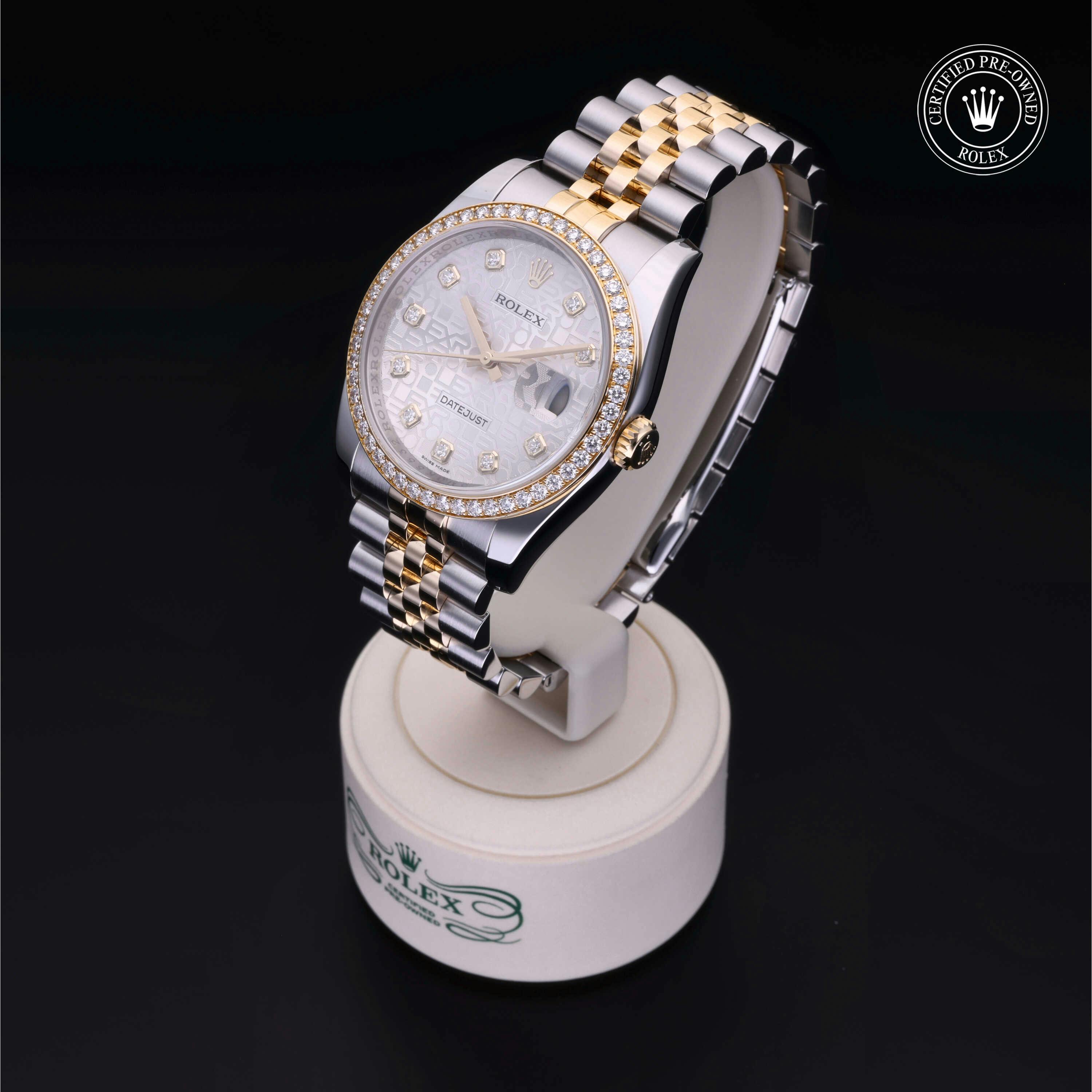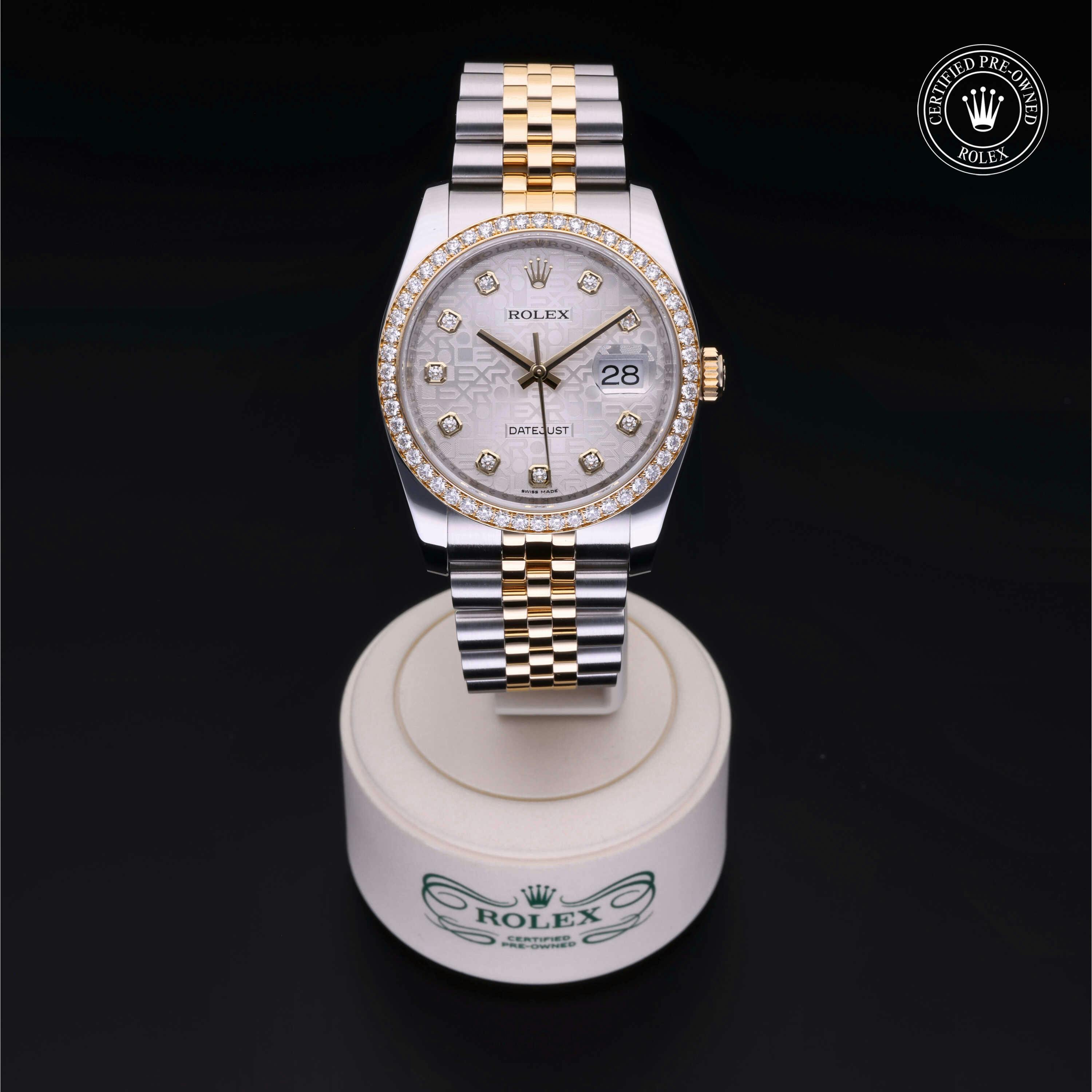 Pre-Owned Rolex Datejust (116243) self - winding automatic watch, features a 36mm stainless steel case surrounding a silver jubilee diamond dial on an 18k yellow gold and stainless steel bracelet with folding buckle. Functions include hours, minutes, seconds and date. This watch has been serviced and does not come with box or papers. Time remaining on the Manufacturer's service warranty!