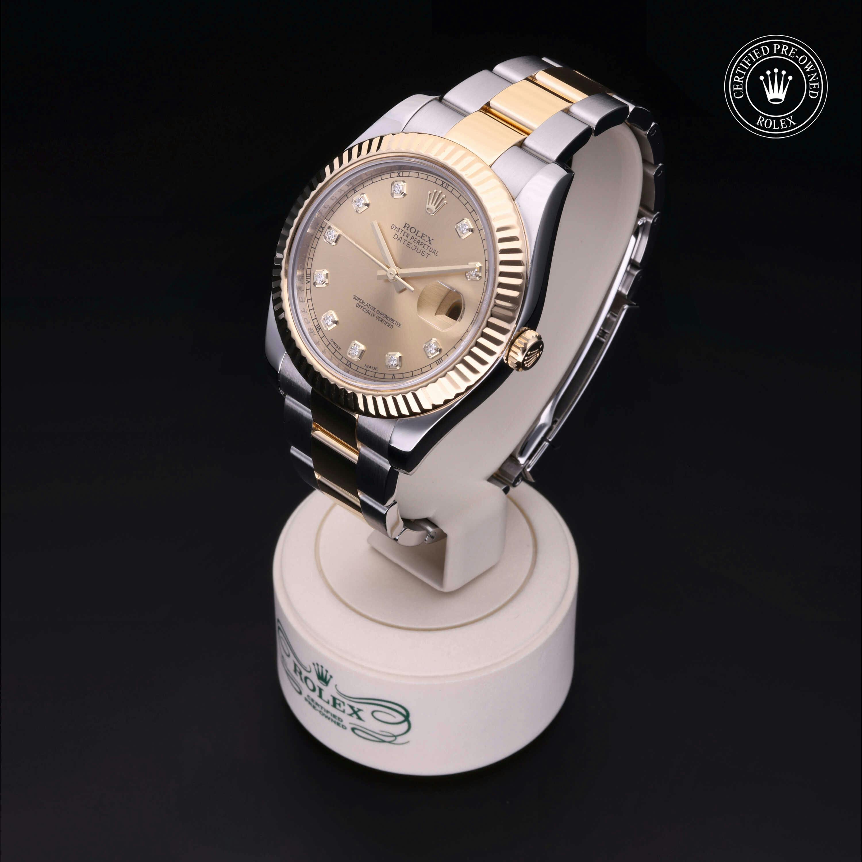 Pre-Owned Rolex Datejust II (116333) self - winding automatic watch, features a 41mm stainless steel case surrounding a champagne dial on a strap. Functions include hours, minutes, seconds, date This watch has been serviced and comes with the original box. Time remaining on the Manufacturer's service warranty! This watch will be ready to ship in 5-7 days!