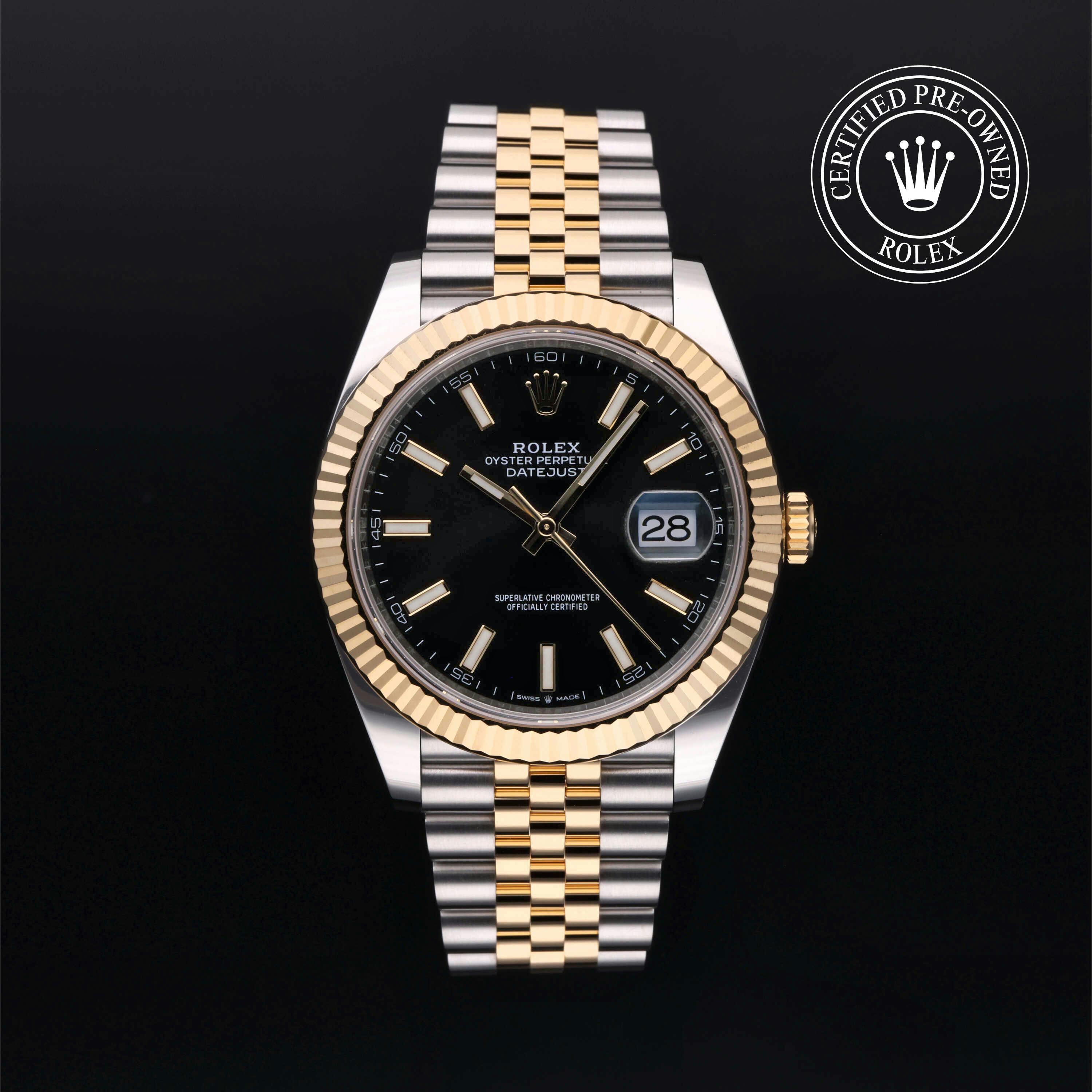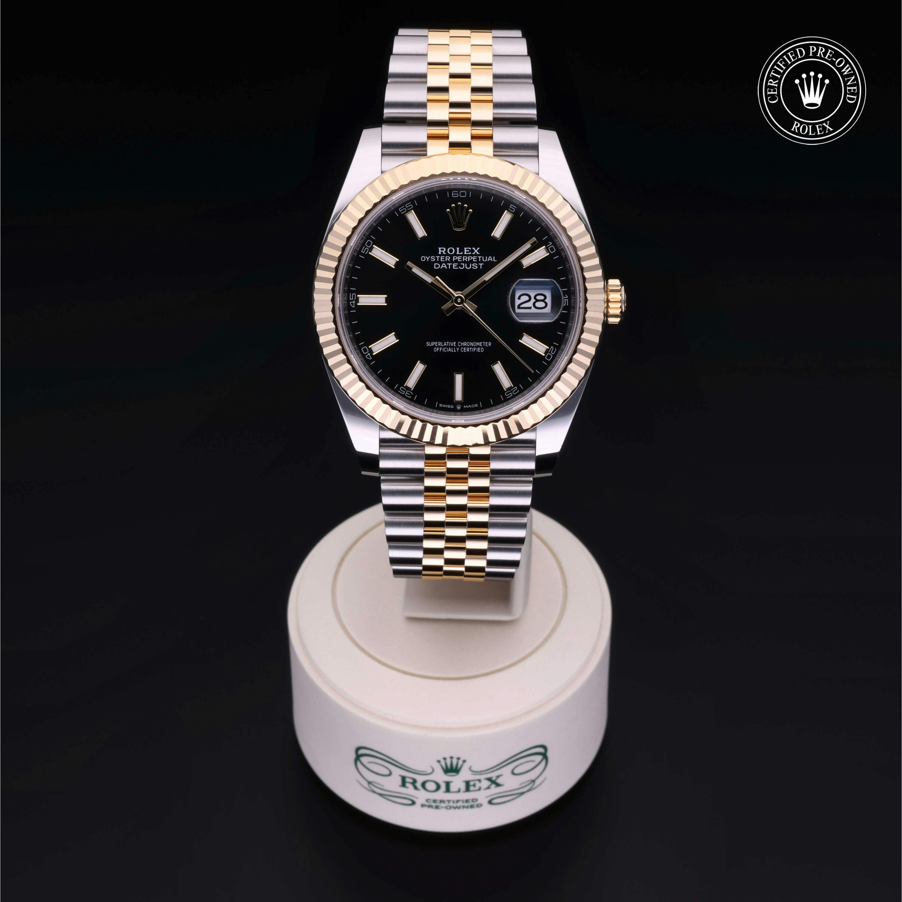 Pre-Owned Rolex Datejust (126333) self - winding automatic watch, features a 41mm stainless steel case surrounding a black dial on a strap. Functions include hours, minutes, seconds, date This watch has been serviced and comes complete with the original box and papers. Time remaining on the Manufacturer's service warranty!