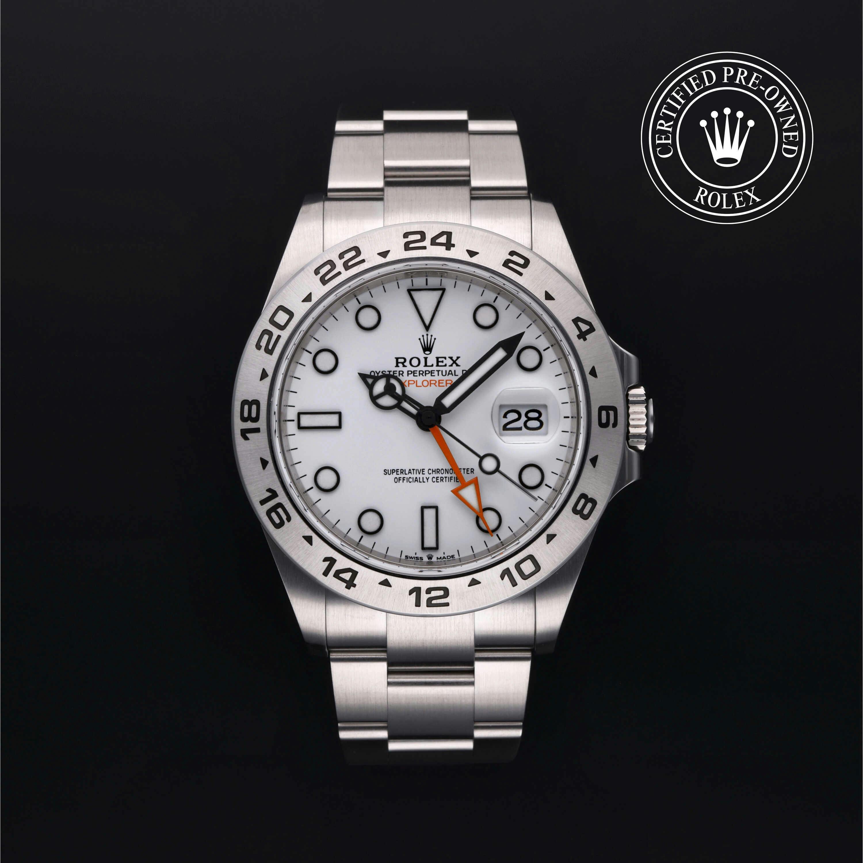Among collectors, the white dial Rolex Explorer II is often nicknamed the "Polar Rolex"—a reference to its crisp aesthetic and durable reputation on arctic and alpine expeditions. This distinctive version has become one of the most sought-after models in the certified pre-owned Explorer II market.