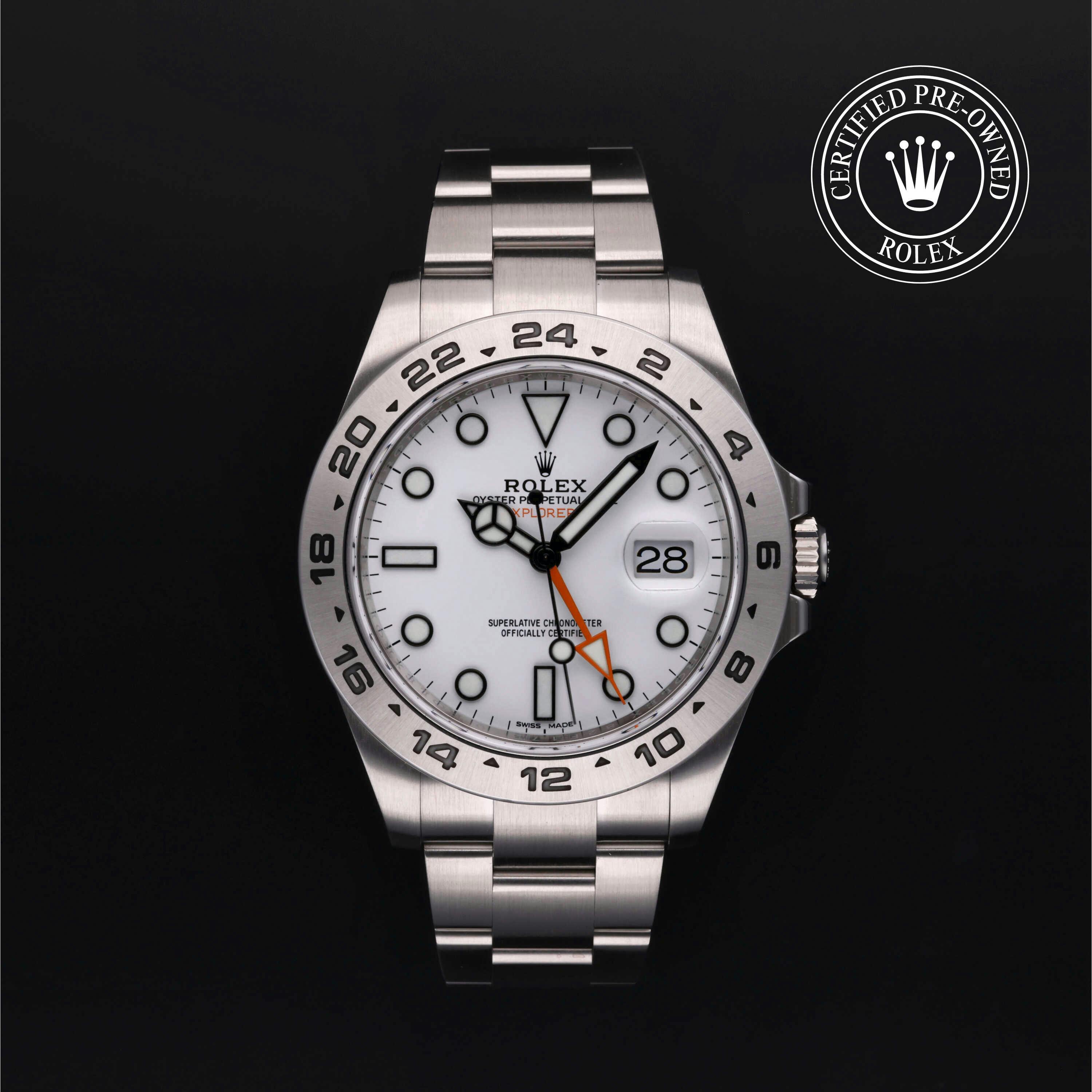 Among collectors, the white dial Rolex Explorer II is often nicknamed the "Polar Rolex"—a reference to its crisp aesthetic and durable reputation on arctic and alpine expeditions. This distinctive version has become one of the most sought-after models in the certified pre-owned Explorer II market.