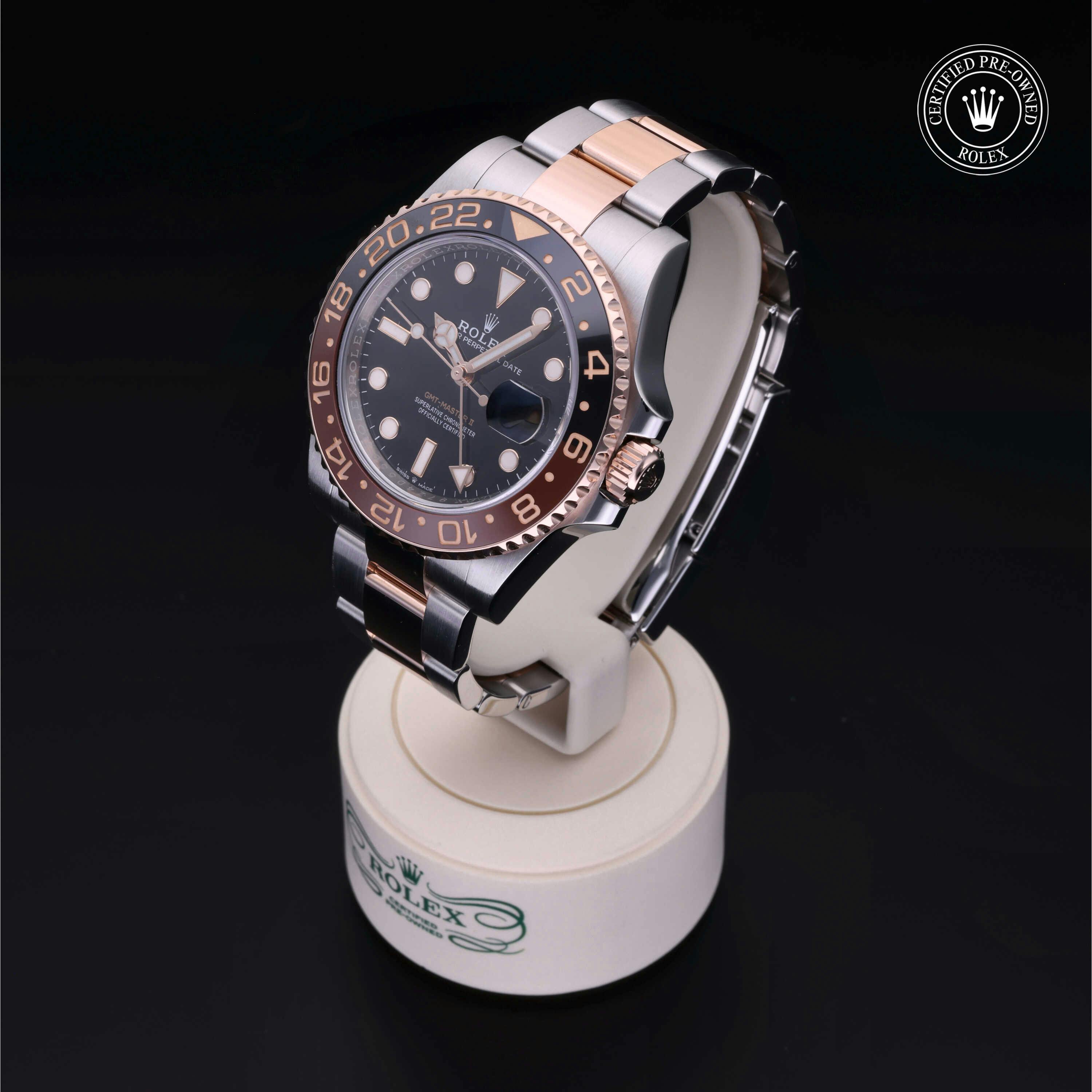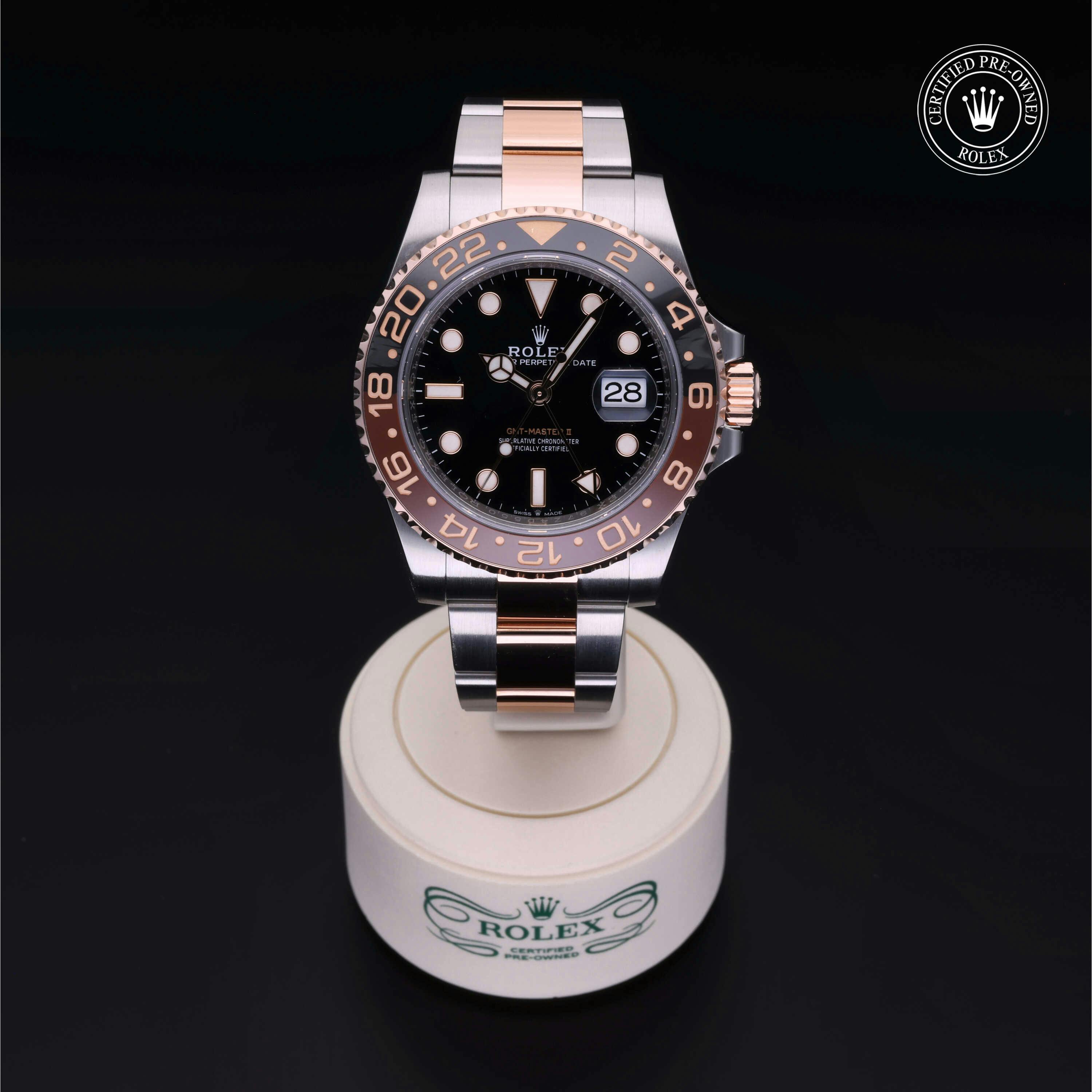 Pre-Owned Rolex GMT-Master II (126711CHNR) self - winding automatic watch, features a 40mm stainless steel case surrounding a black dial on a strap. Functions include hours, minutes, seconds, date, gmt/world time This watch has been serviced and does not come with box or papers. Time remaining on the Manufacturer's service warranty! This watch will be ready to ship in 5-7 days!