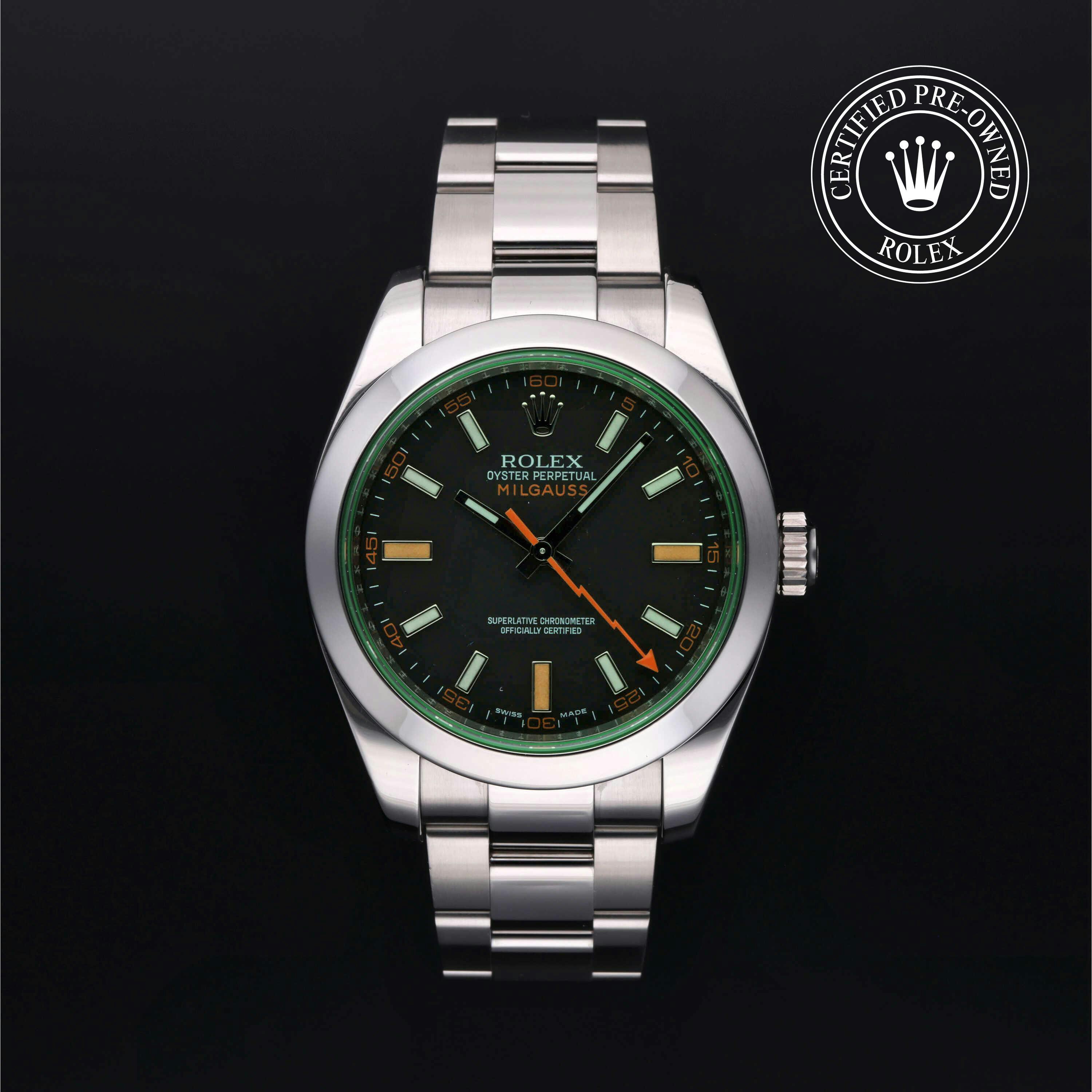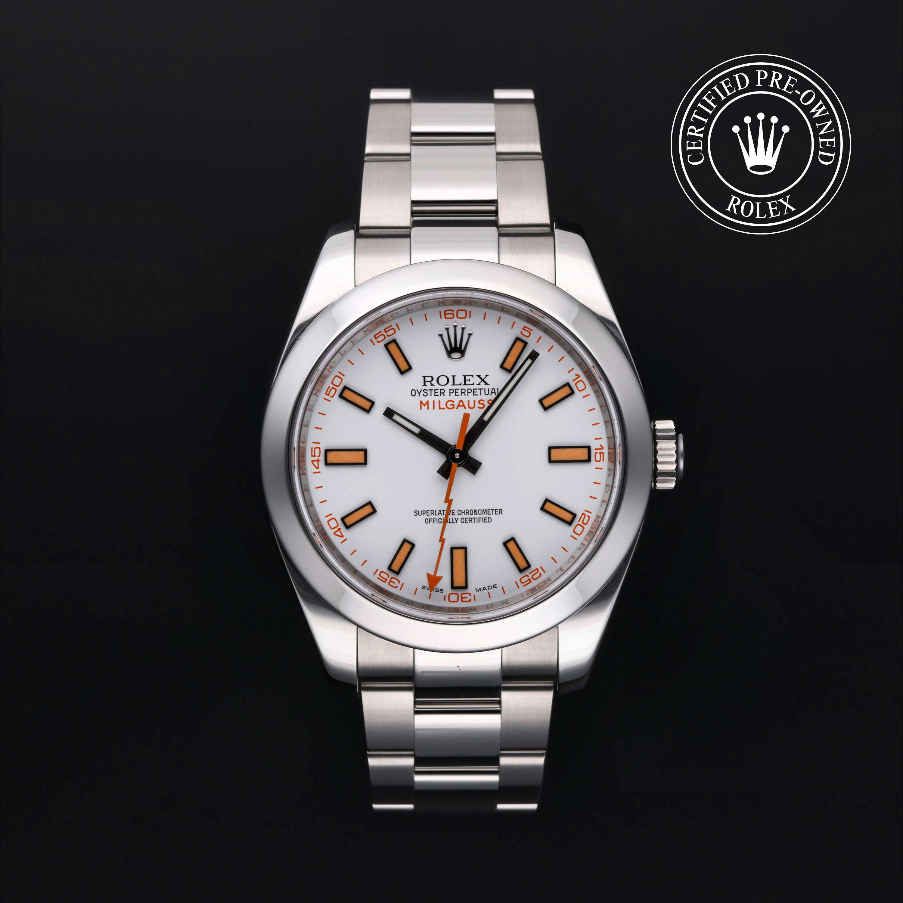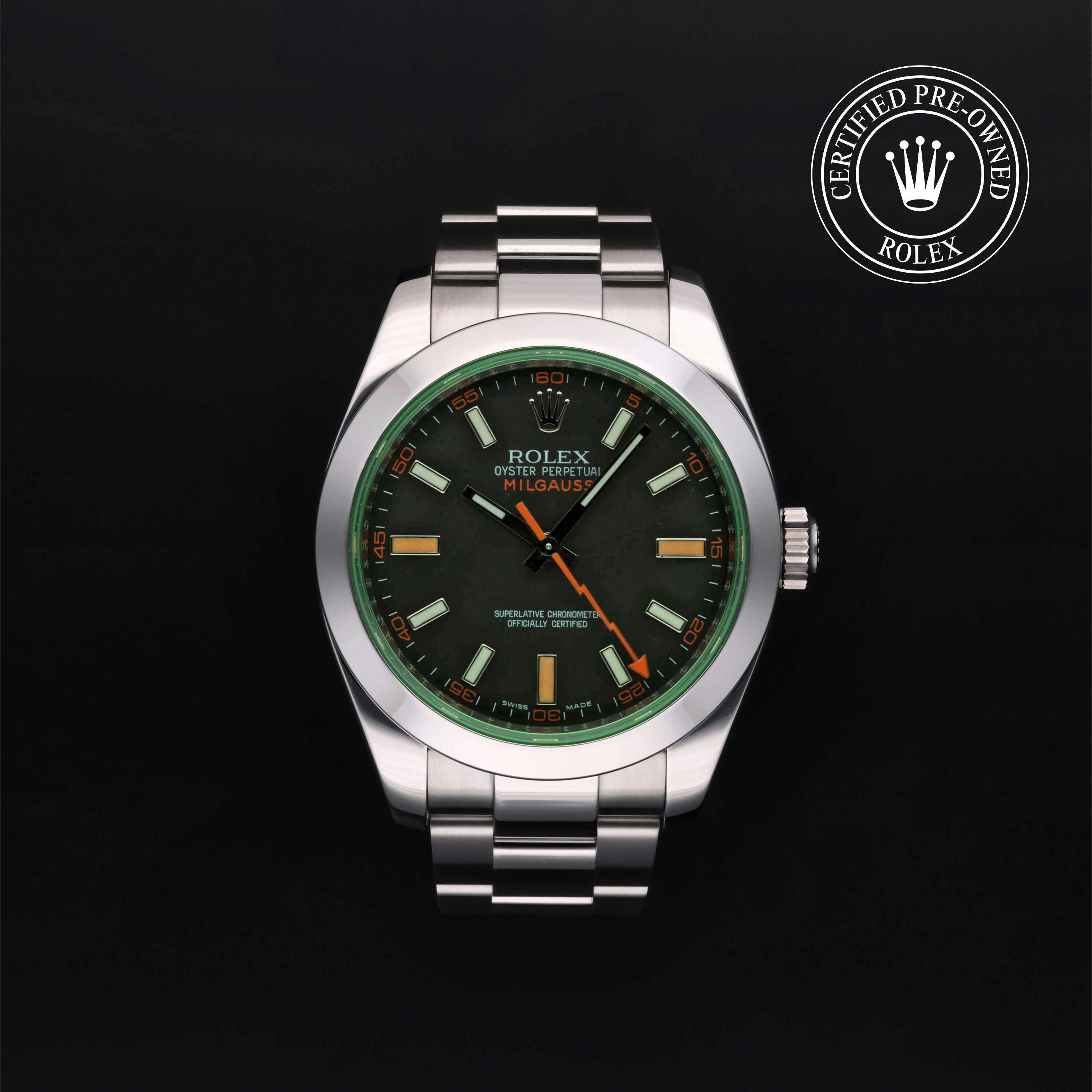 Designed to withstand magnetic fields of up to 1,000 gauss, the Rolex Milgauss was originally engineered for the scientific community, those working in labs or near magnetic equipment. Today, it is appreciated for both its utility and standout aesthetics. Explore our entire collection of Rolex Certified Pre-Owned Milgauss watches to discover classic and contemporary references.