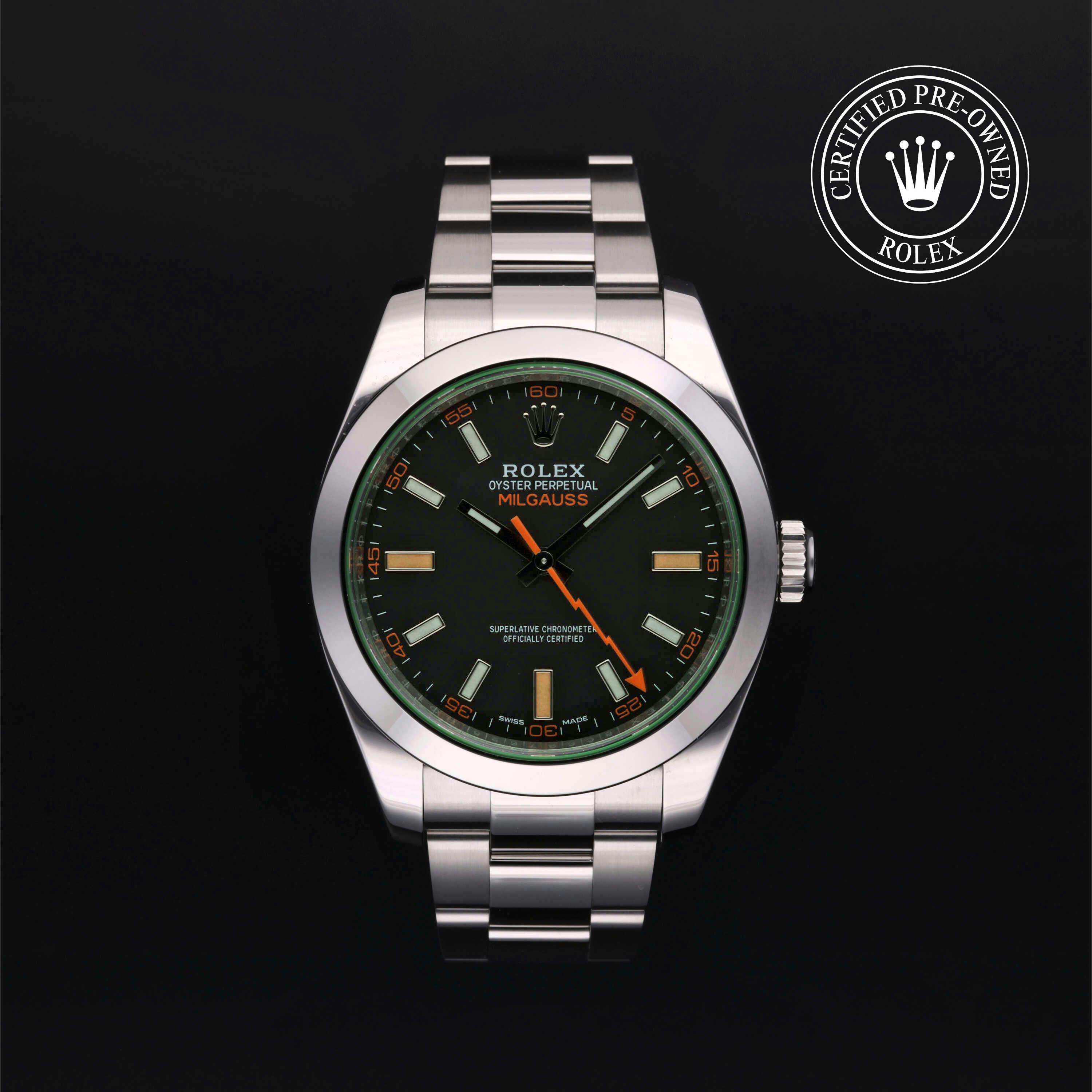 Designed to withstand magnetic fields of up to 1,000 gauss, the Rolex Milgauss was originally engineered for the scientific community, those working in labs or near magnetic equipment. Today, it is appreciated for both its utility and standout aesthetics. Explore our entire collection of Rolex Certified Pre-Owned Milgauss watches to discover classic and contemporary references.
