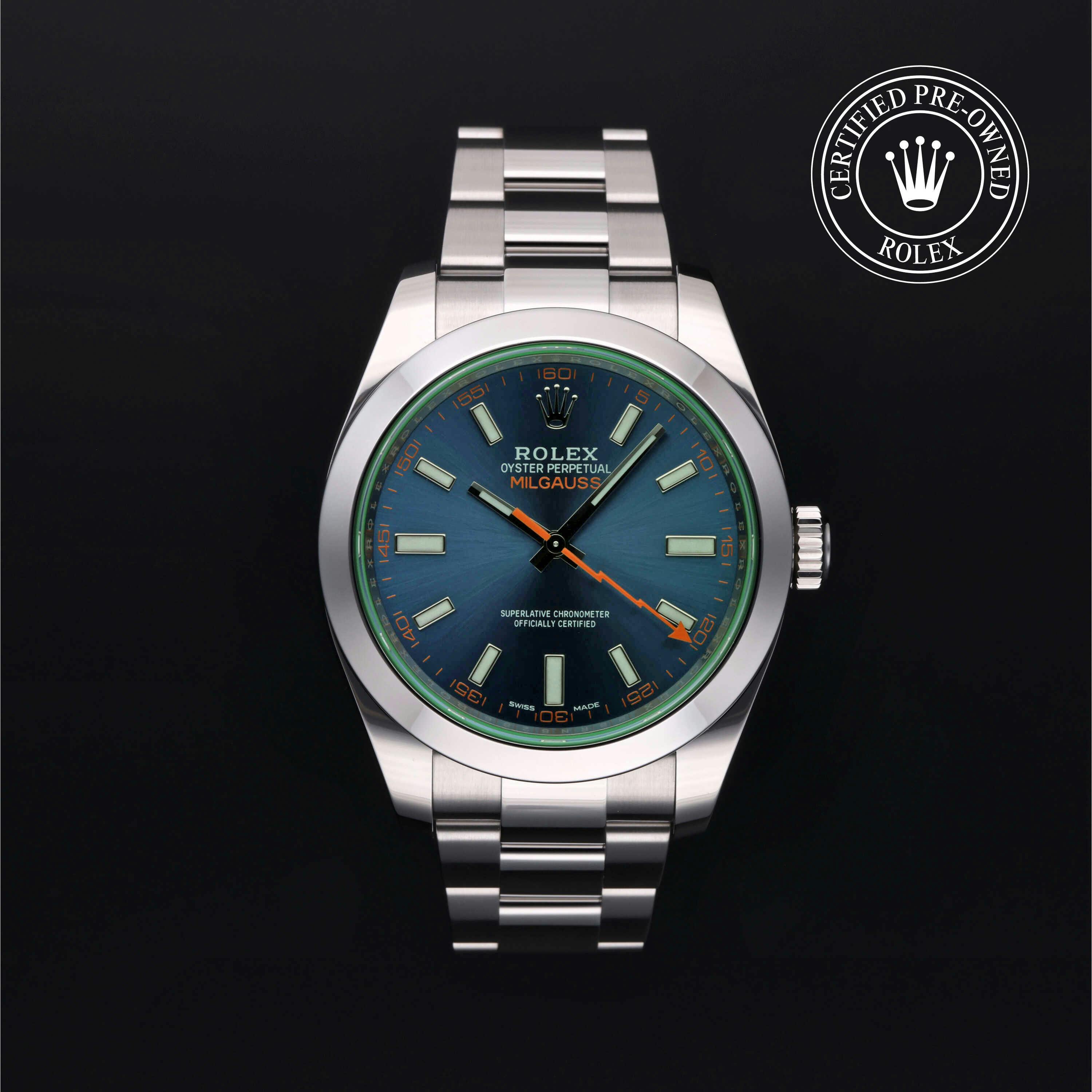 Designed to withstand magnetic fields of up to 1,000 gauss, the Rolex Milgauss was originally engineered for the scientific community, those working in labs or near magnetic equipment. Today, it is appreciated for both its utility and standout aesthetics. Explore our entire collection of Rolex Certified Pre-Owned Milgauss watches to discover classic and contemporary references.
