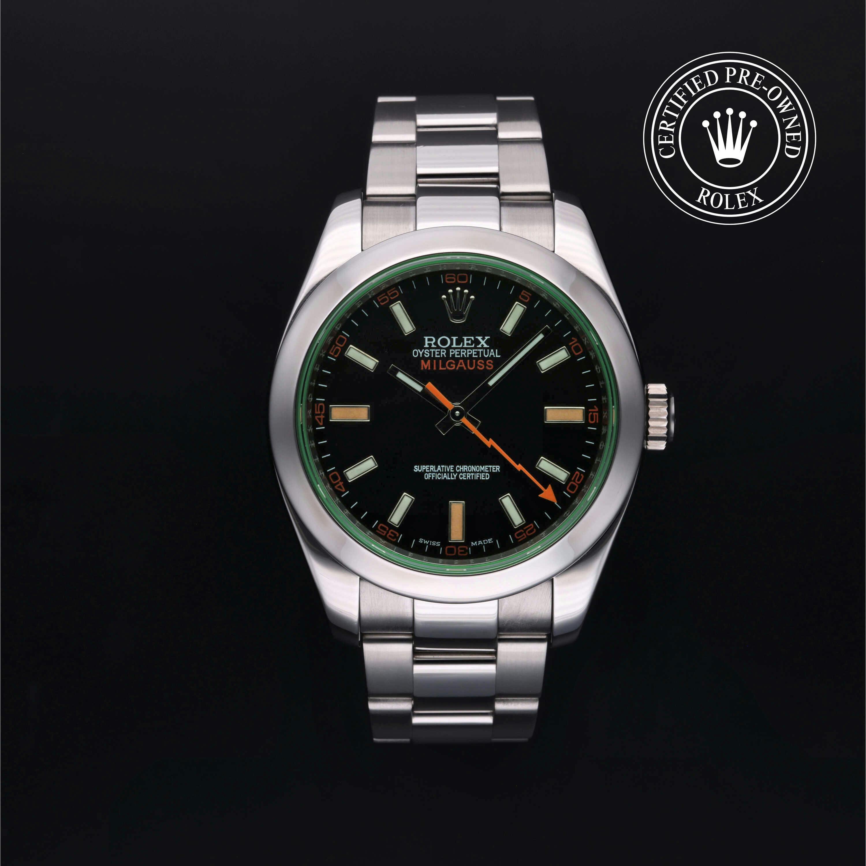 Designed to withstand magnetic fields of up to 1,000 gauss, the Rolex Milgauss was originally engineered for the scientific community, those working in labs or near magnetic equipment. Today, it is appreciated for both its utility and standout aesthetics. Explore our entire collection of Rolex Certified Pre-Owned Milgauss watches to discover classic and contemporary references.