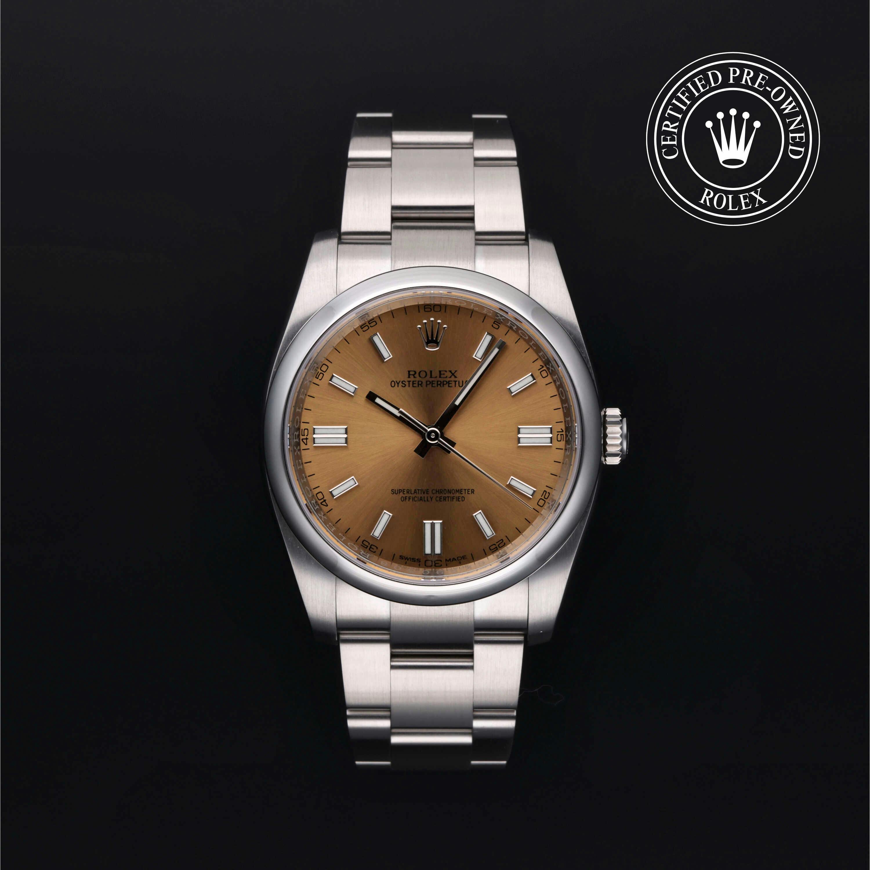 The Oyster Perpetual epitomizes the innovation and vigor of the Rolex brand. Boasting extreme precision, bold dial colors, and captivating calibers, this collection is both impressive and handsome. Browse our Rolex Certified Pre-Owned Oyster Perpetual collection to discover a wide assortment of used men's and women's Oyster Perpetual watches in sizes from 26mm to 41mm.
