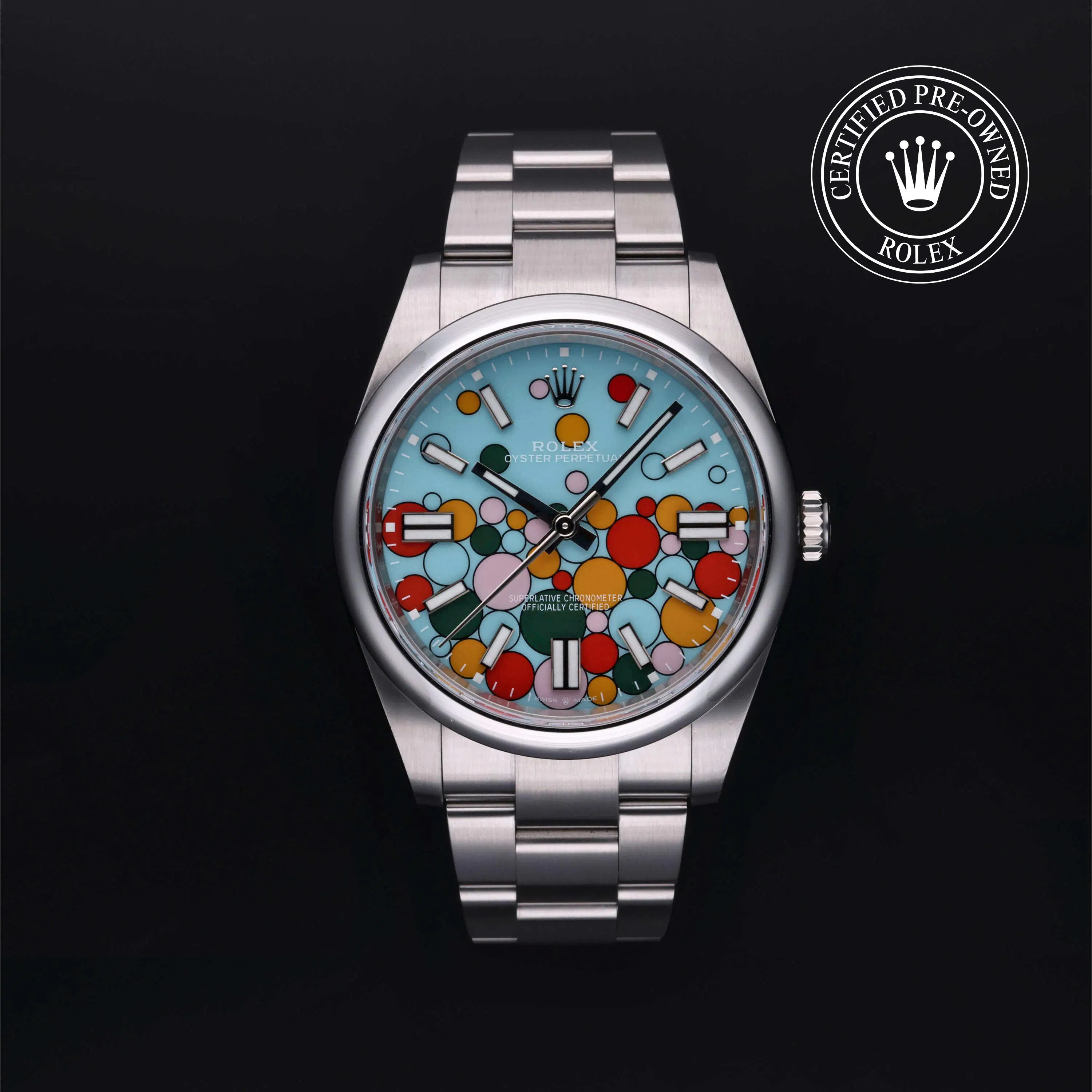 The Oyster Perpetual has a timeless style: the hours, minutes, and seconds functionality make it well suited for daily wear and a dream for many collectors. Whether you're looking for a modern used Oyster Perpetual 41, a vintage Oyster Perpetual Date, or one of the vibrant Oyster Perpetual dial color variants like turquoise, coral red, candy pink, yellow, or green, the collection includes something for every wrist and every occasion.