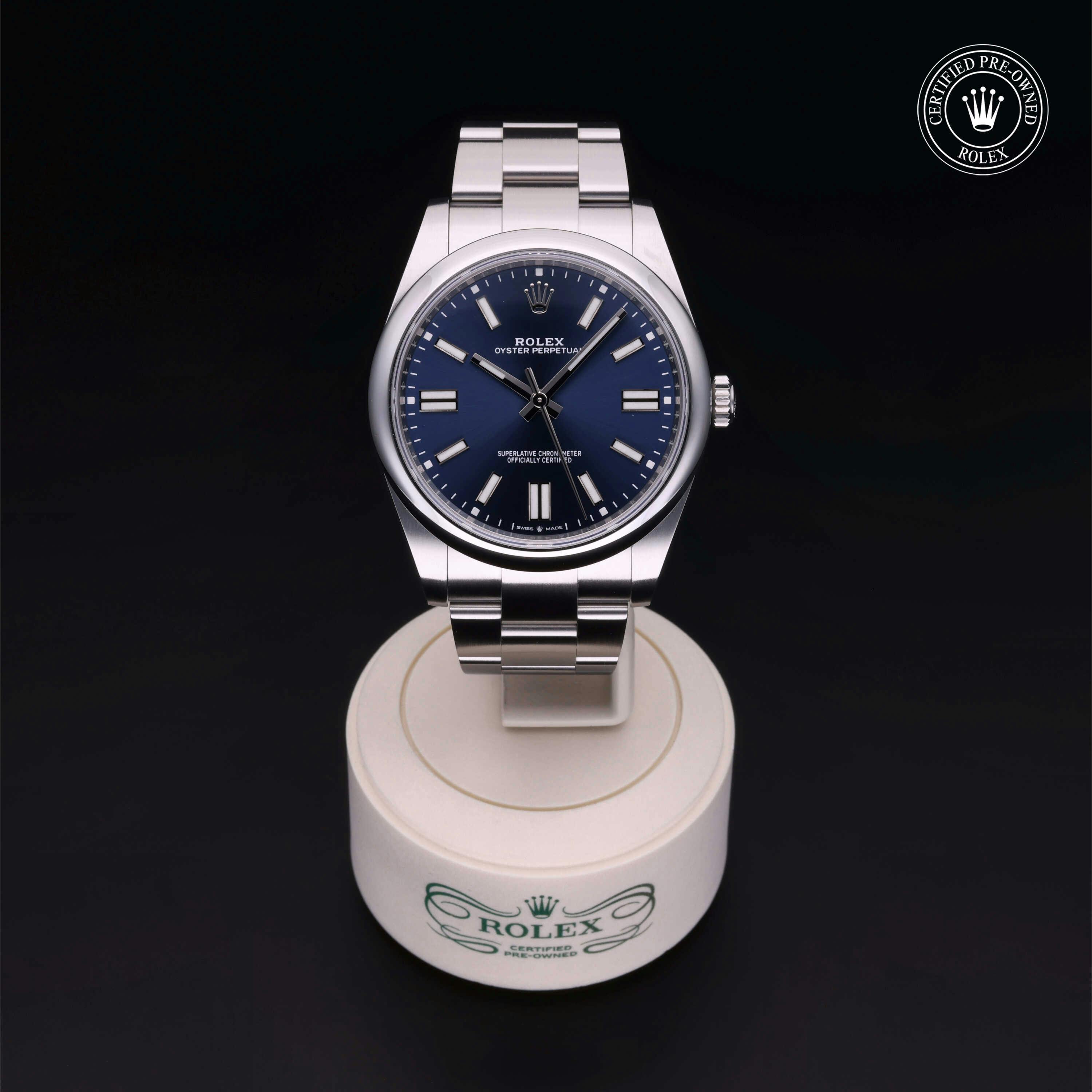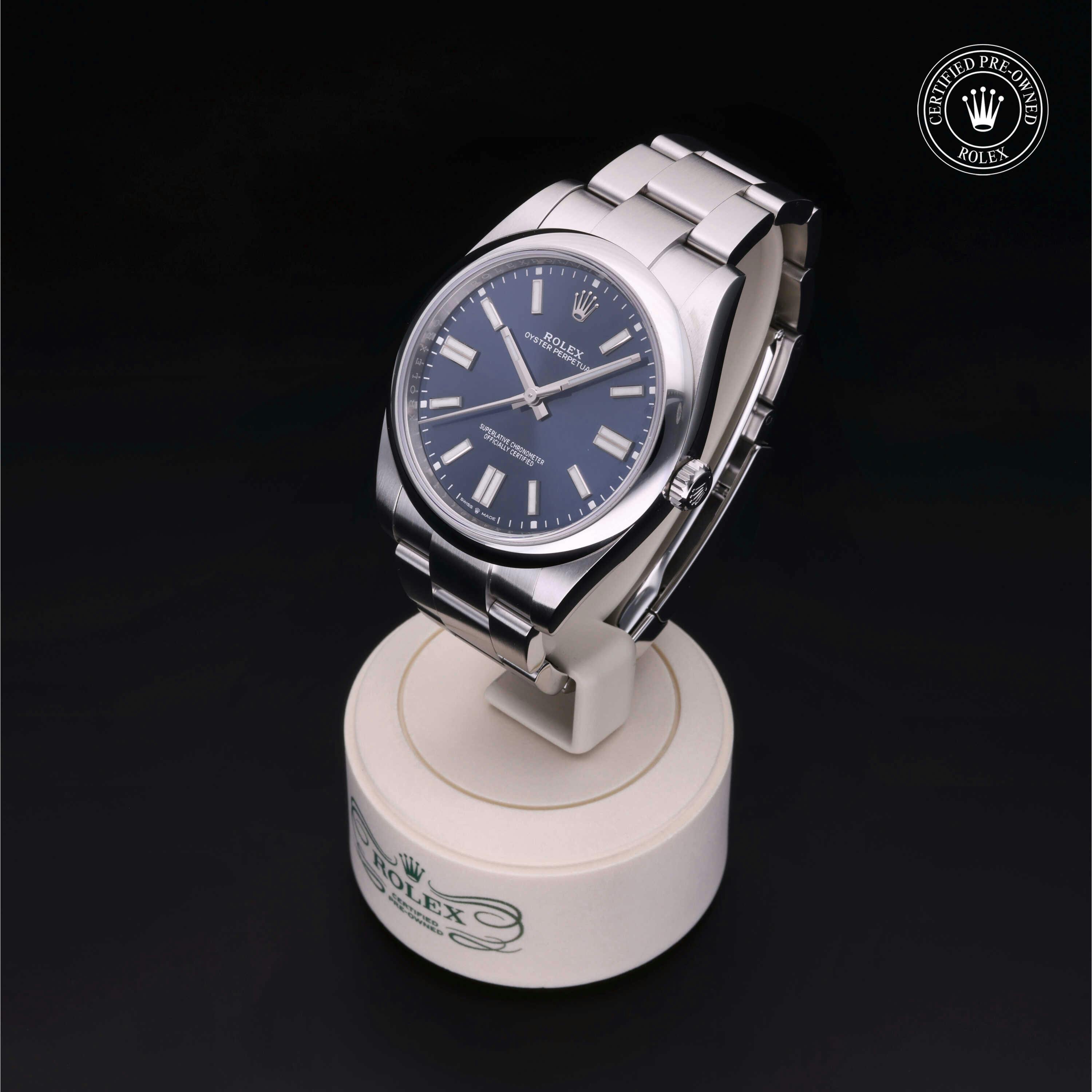 Pre-Owned Rolex Oyster Perpetual (124300) self - winding automatic watch, features a 41mm stainless steel case surrounding a blue dial on a strap. Functions include hours, minutes, seconds This watch has been serviced and comes complete with the original box and papers. Time remaining on the Manufacturer's service warranty! This watch will be ready to ship in 5-7 days!