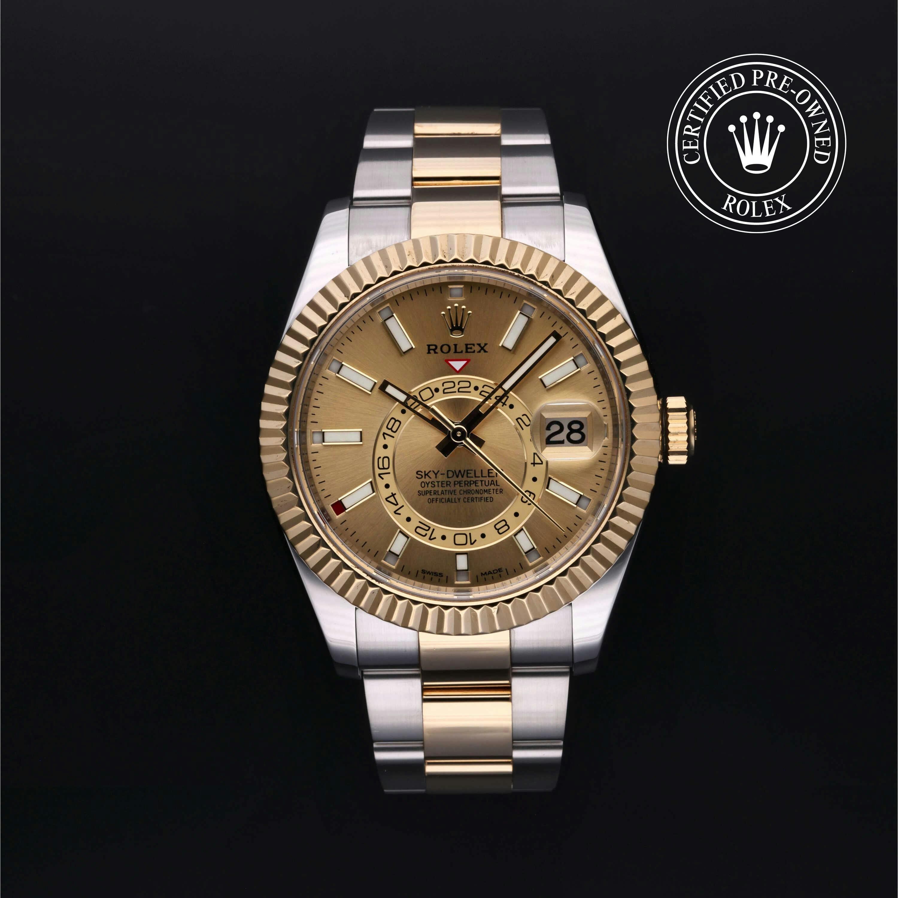 The Rolex Sky-Dweller is a standout among Rolex Certified Pre-Owned collections, renowned for combining dual time zones and an annual calendar in a seamless, user-friendly design. It's the most complex watch in the current Rolex lineup, engineered for global travelers and sophisticated collectors alike.