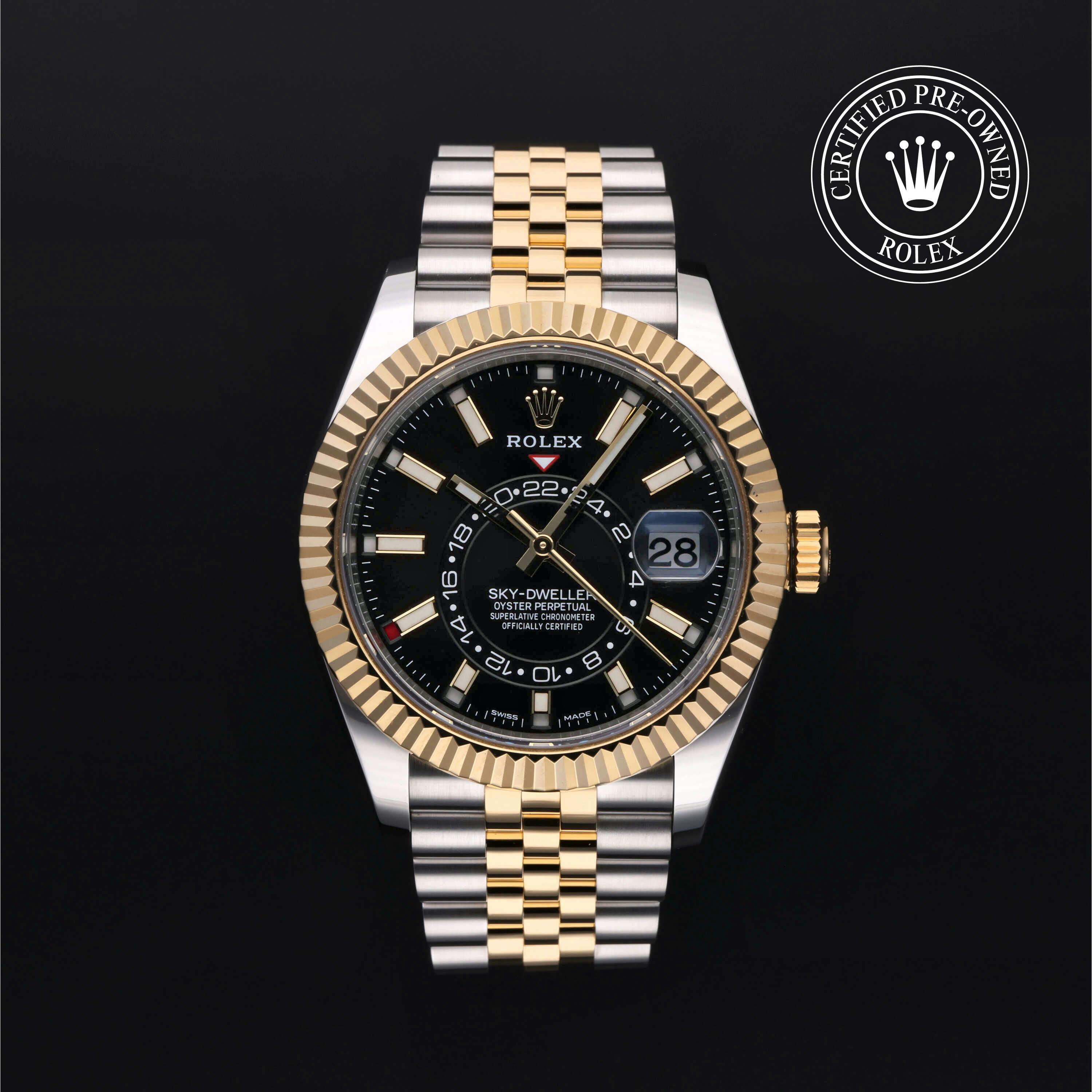 The Rolex Sky-Dweller is a standout among Rolex Certified Pre-Owned collections, renowned for combining dual time zones and an annual calendar in a seamless, user-friendly design. It's the most complex watch in the current Rolex lineup, engineered for global travelers and sophisticated collectors alike.