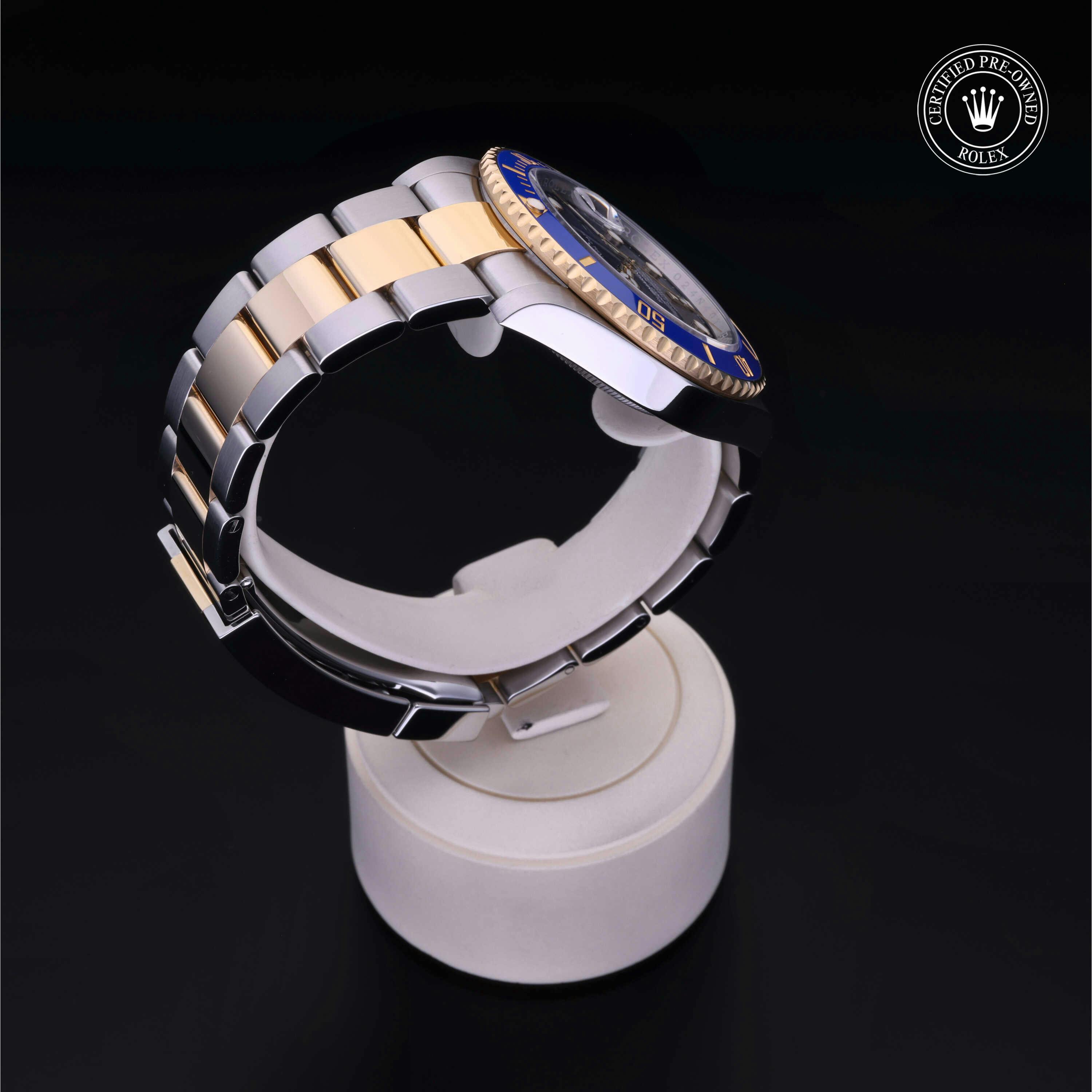 Rolex Certified Pre-Owned Submariner (126613LB) self - winding automatic watch, features a 41mm stainless steel case with an 18k yellow gold and blue cerachrom bezel surrounding a blue dial on a stainless steel and 18k yellow gold oyster bracelet. Functions include hours, minutes, seconds and date. This watch has received Rolex-authorized service and certification. It comes with the original box and papers, and includes a custom Rolex Certified Pre-Owned hang tag, travel pouch and RCPO international warranty card.