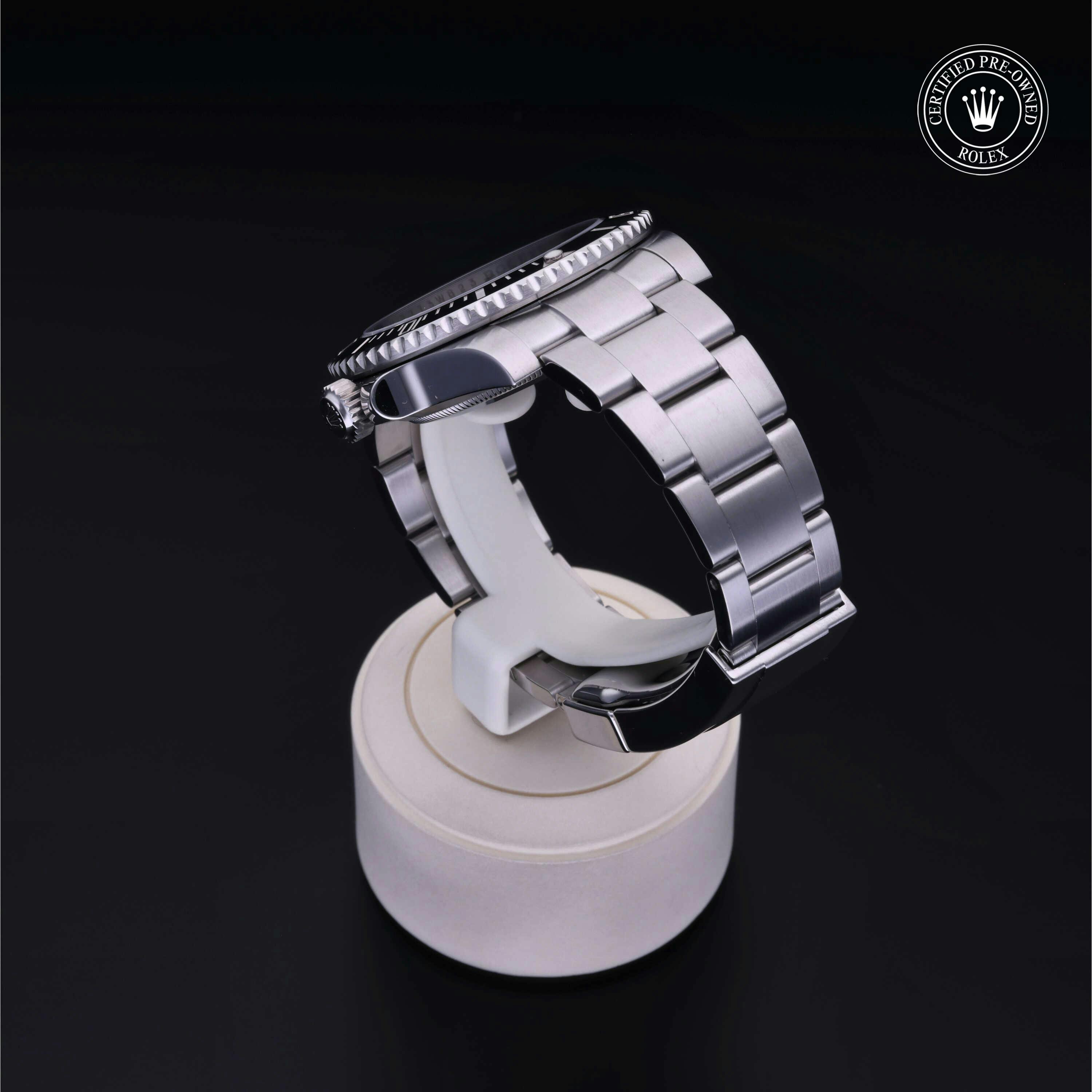 Rolex Certified Pre-Owned Submariner No Date (114060) self - winding automatic watch, features a 40mm stainless steel case and rotating bezel with a black cerachrom insert surrounding a black dial on a stainless steel oyster bracelet. Functions include hours, minutes and seconds. This watch has received Rolex-authorized service and certification. It does not come with the original box or papers, but includes a custom Rolex Certified Pre-Owned hang tag, travel pouch and RCPO international warranty card.
