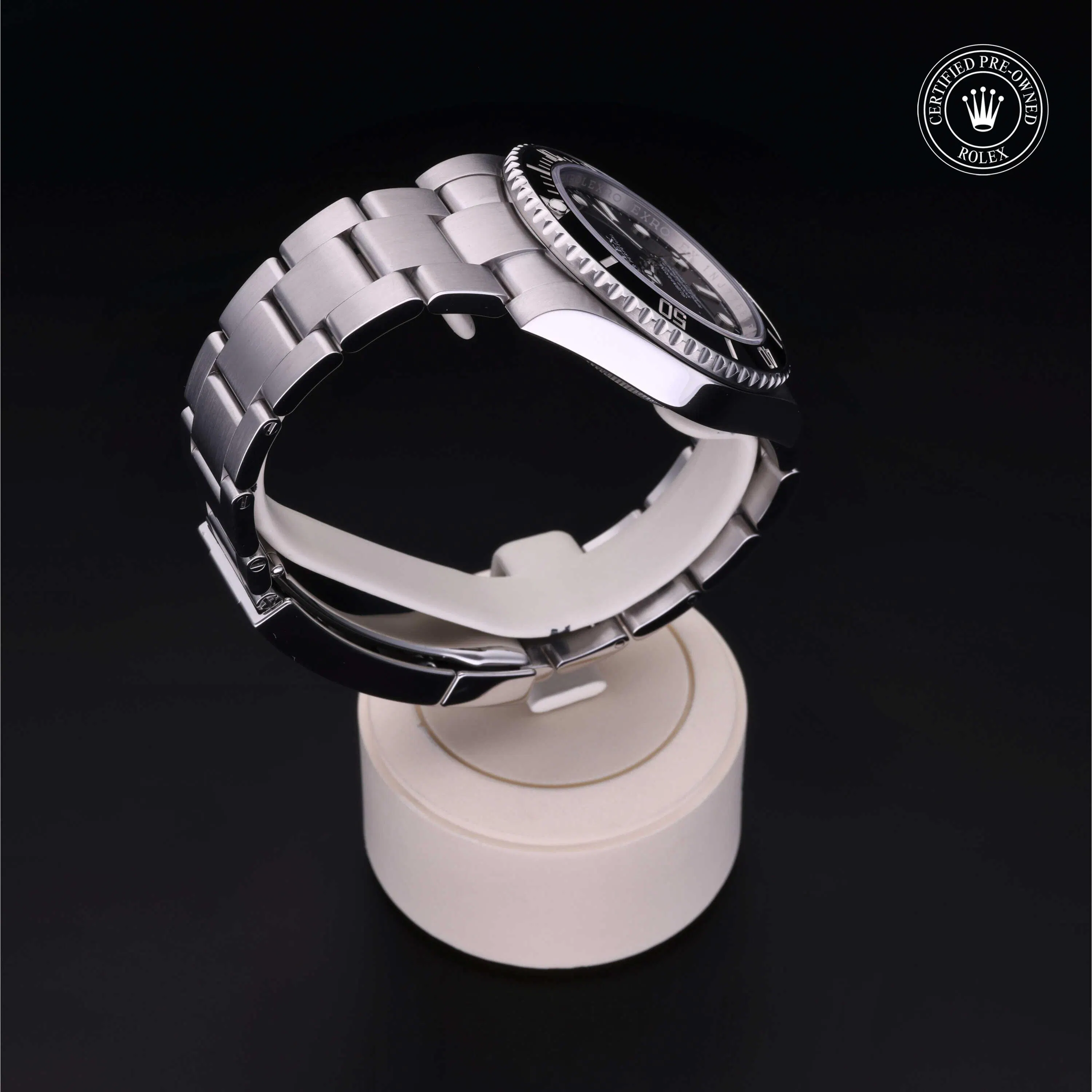 Rolex Certified Pre-Owned Submariner No Date (114060) self - winding automatic watch, features a 40mm stainless steel case and unidirectional rotating bezel with a black cerachrom insert surrounding a black dial on a stainless steel Oyster bracelet. Functions include hours, minutes and seconds. This watch has received Rolex-authorized service and certification. It does not come with the original box or papers, but includes a custom Rolex Certified Pre-Owned hang tag, travel pouch and RCPO international warranty card.
