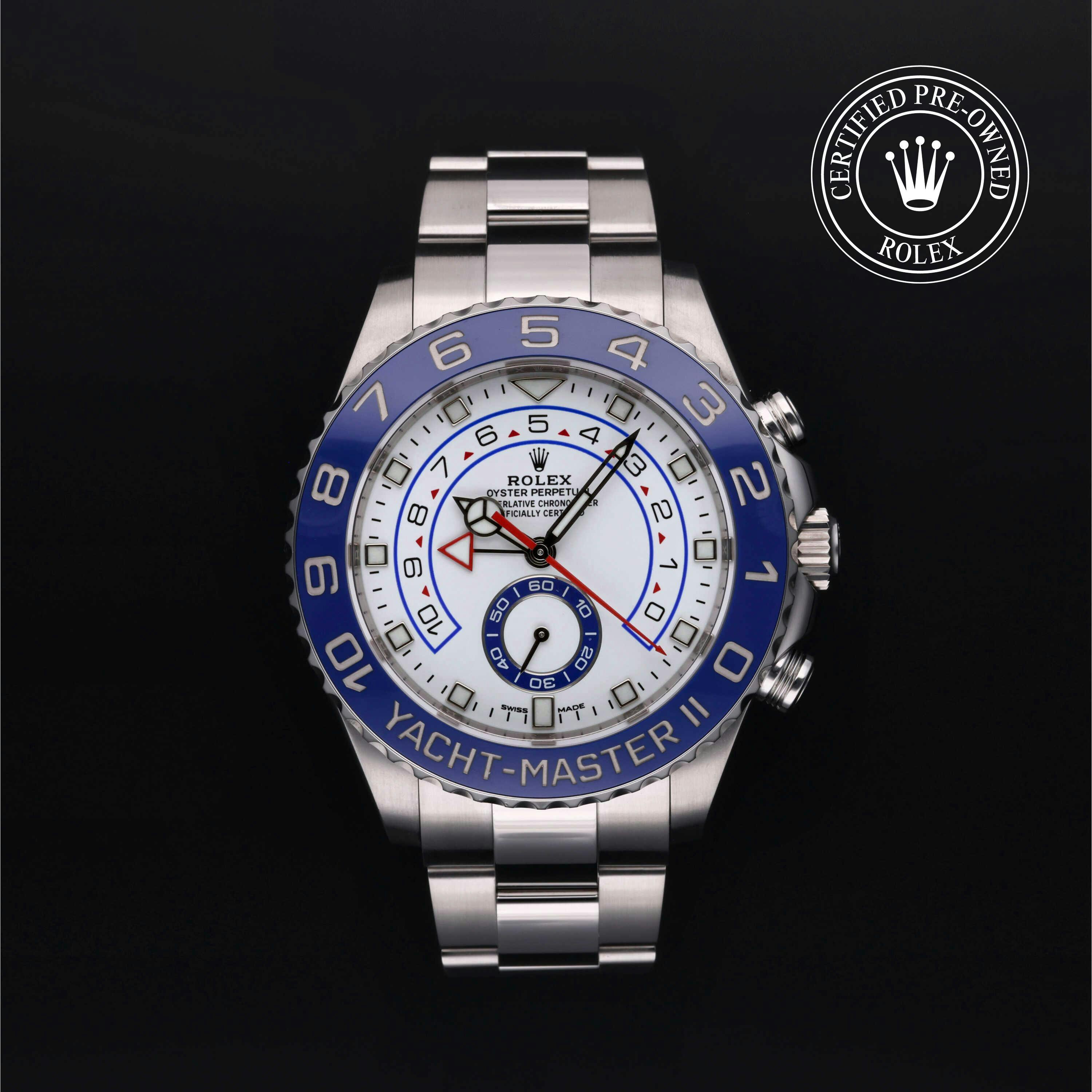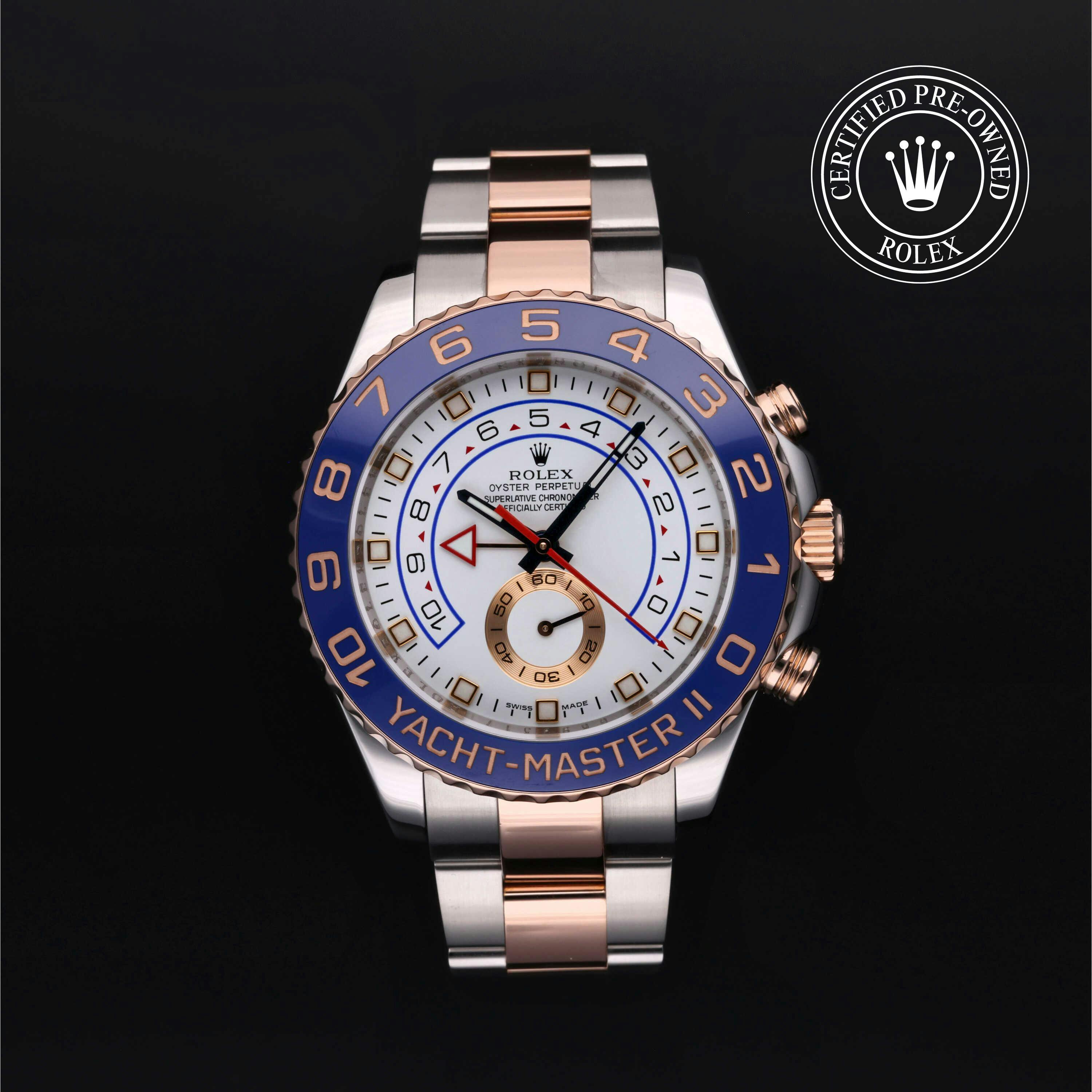 The Rolex Yacht-Master II is a regatta-ready chronograph, renowned for its programmable countdown timer with mechanical memory and precise flyback function. Explore our Rolex Certified Pre-Owned collection of Yacht-Master II watches in Oystersteel, yellow gold, white gold, and two-tone Everose Rolesor.