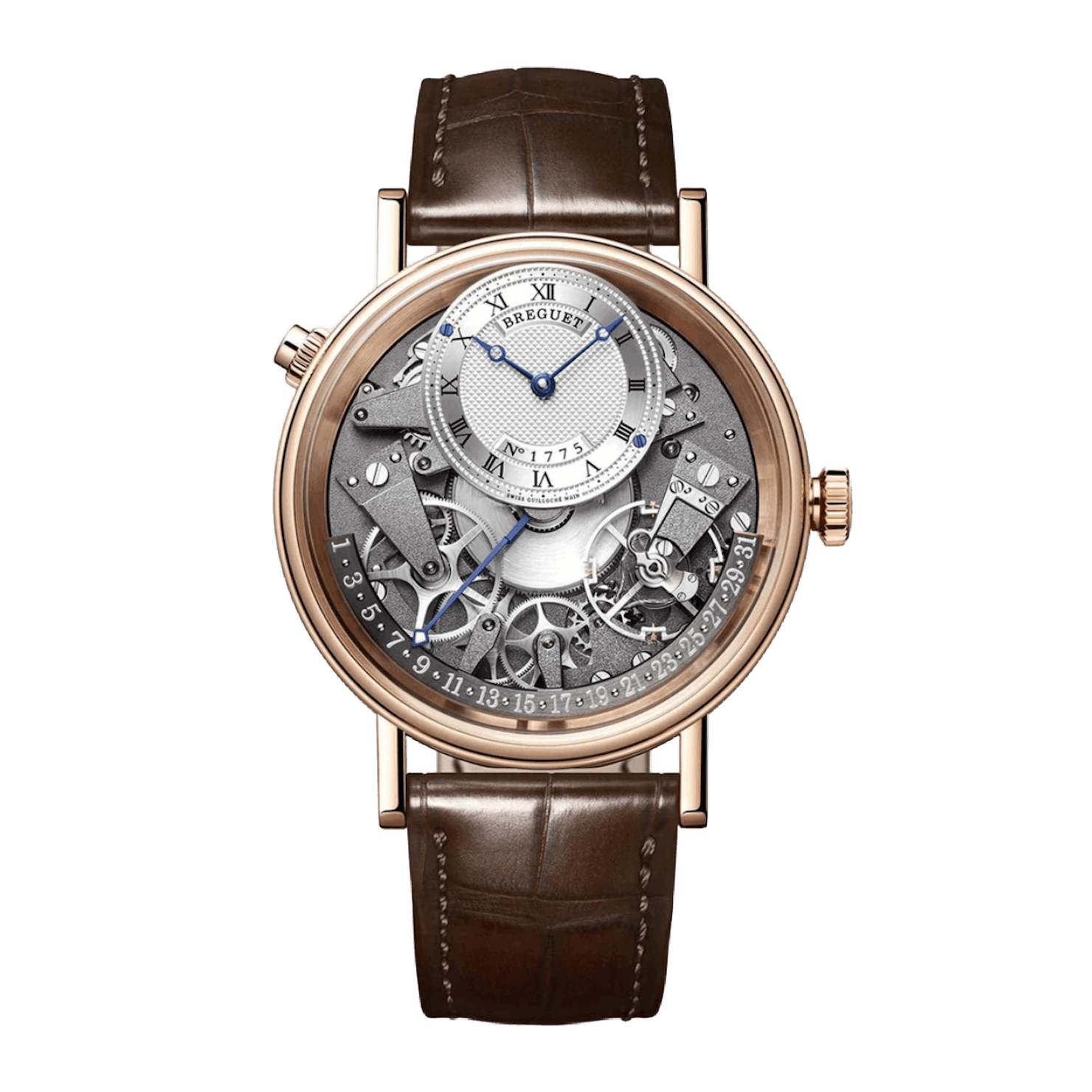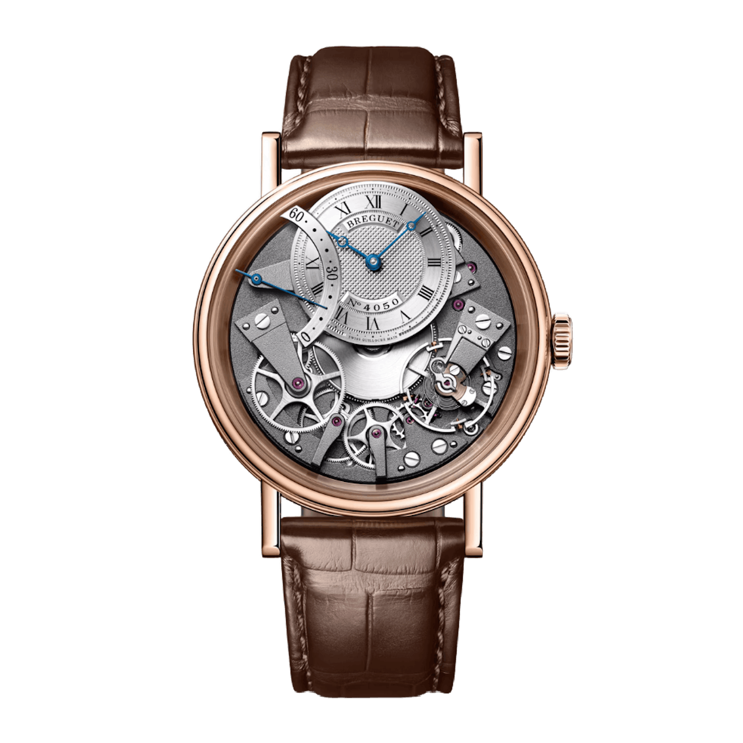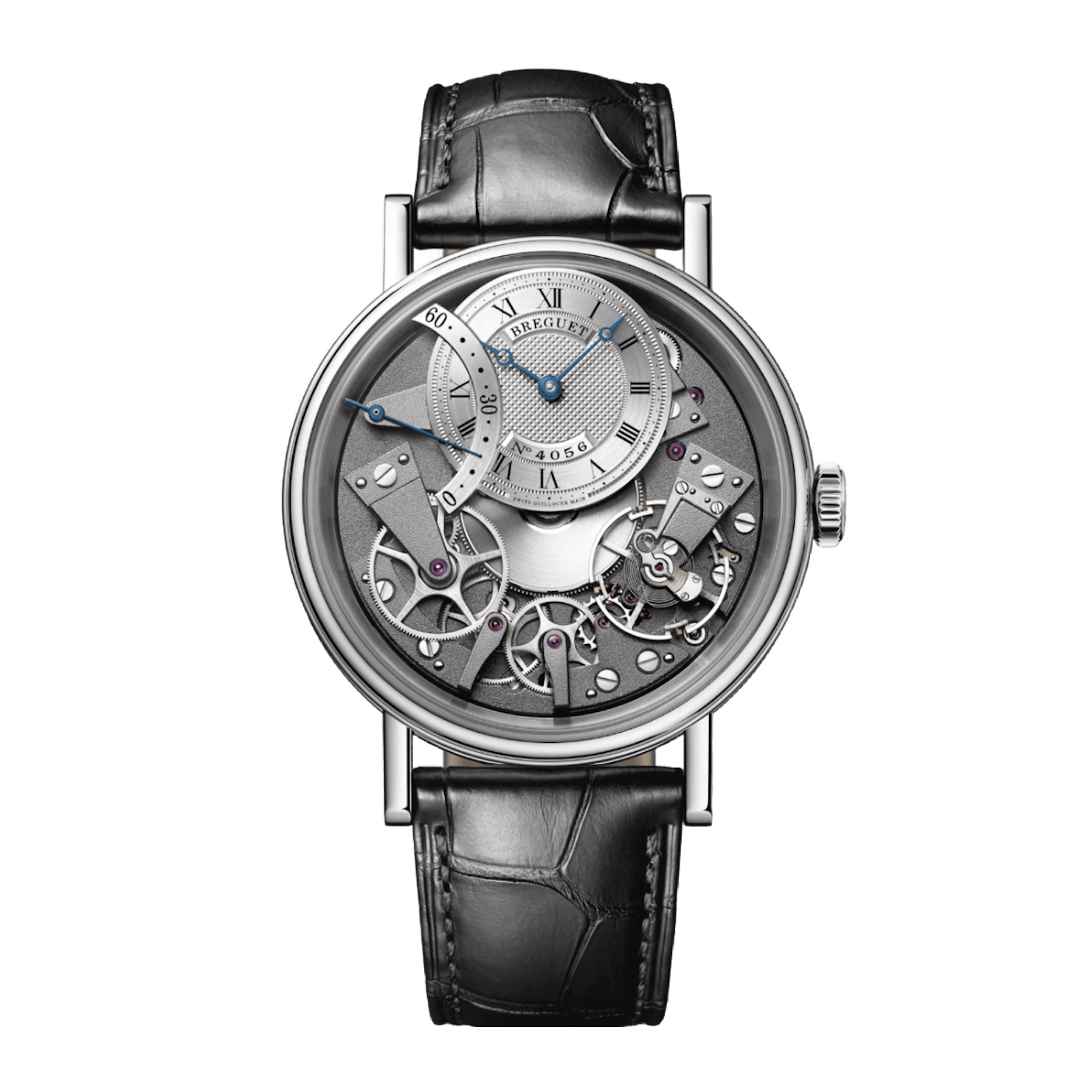 The Tradition collection turns traditional watchmaking inside out. Inspired by Breguet's souscription watches of the late 18th century, these pieces reveal their symmetrical gear trains, pare-chute shock absorbers, and finely finished bridges on the dial side. The result is a compelling blend of classical architecture and mechanical transparency.