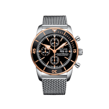 The Breitling Superocean Heritage collection pays tribute to the brand's original 1950s dive watches, reimagined for the modern era. With its vintage-inspired minimalist dial, ceramic bezel, and signature mesh-style "Milanese" bracelet, the Superocean Heritage blends mid-century elegance with contemporary durability.