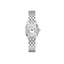 The Cartier Panthère is a watch that wears like a bracelet — fluid, elegant, and unmistakably Cartier. Its rounded square case, Roman numeral dial, and polished link bracelet evoke a sense of classic luxury with a modern attitude. Reimagined for the contemporary woman, the Panthère offers updated construction and timeless design across various case sizes and metal finishes. As an authorized retailer, The 1916 Company offers new Panthère watches for women online and in our Baltimore, Delaware, Denver, and Newport Beach showrooms. You can also explore other Cartier collections with us.