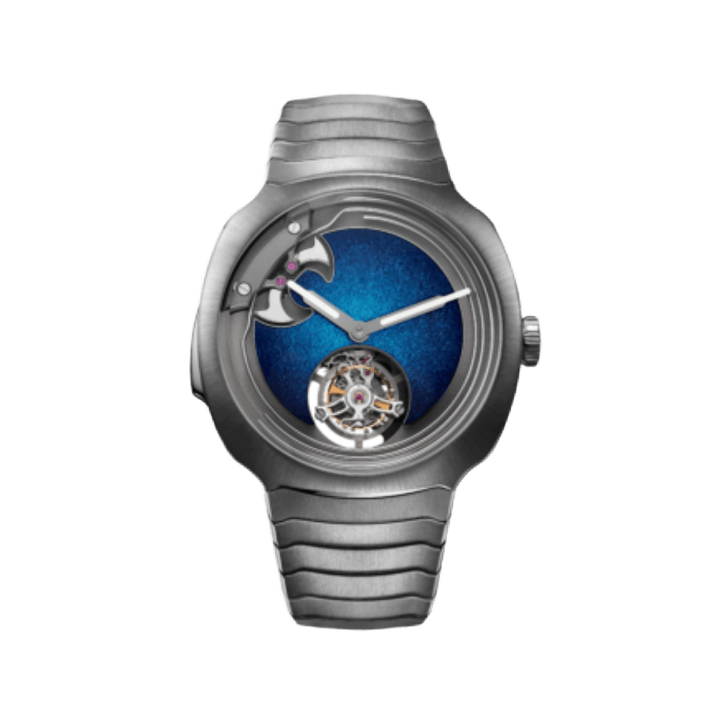 The Streamliner is Moser's boldest modern design — a fully integrated bracelet watch that reimagines 1970s curves with contemporary finesse. Available in chronograph, time-only, and tourbillon formats, Streamliner models feature cushion-shaped cases, radial brushing, and Moser's signature fumé dials in colors like Matrix Green and Funky Blue.