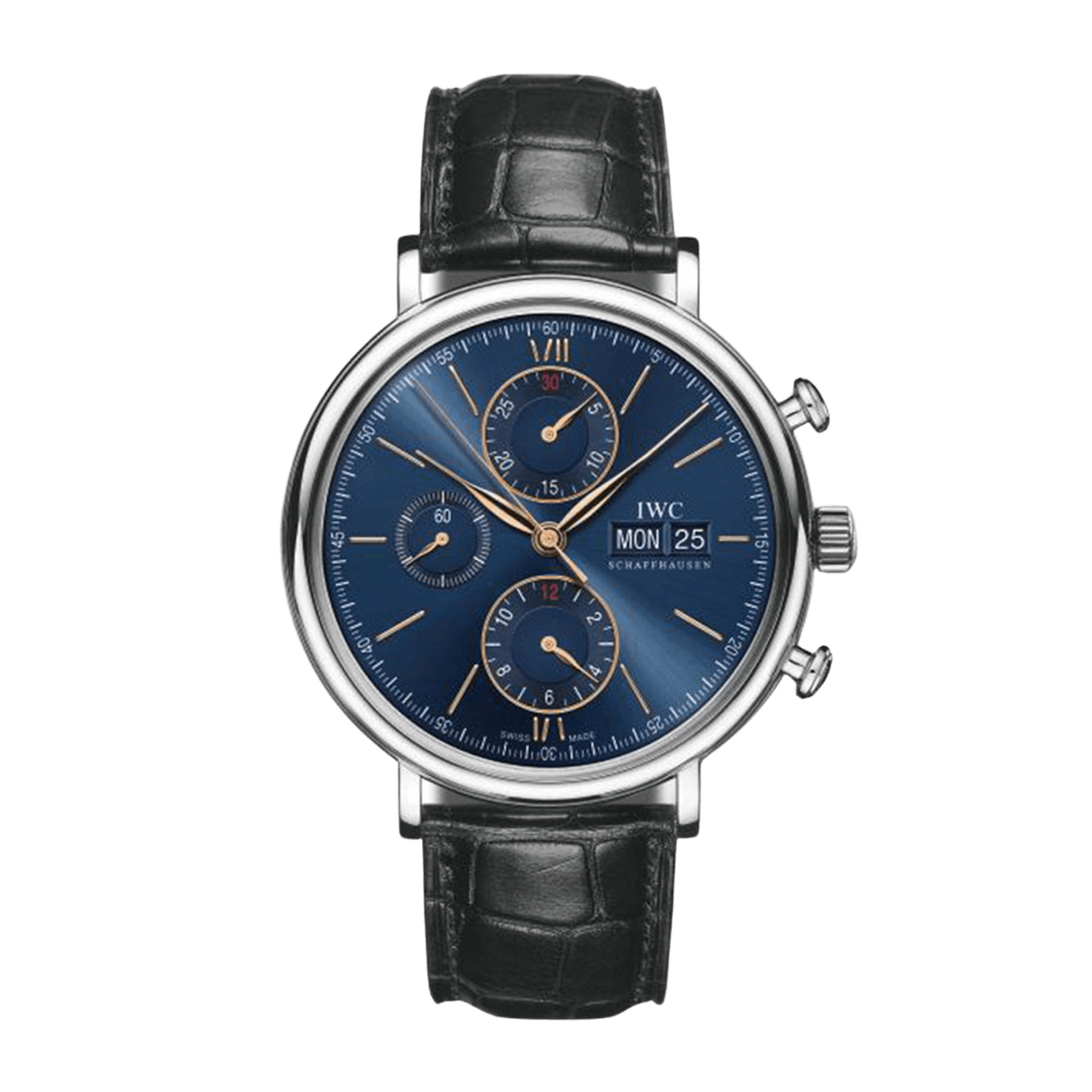 While both are collections from IWC, the Portofino line is known for its minimalist dress watch aesthetic, whereas the Portuguese (now officially called Portugieser) is sportier and often larger, with more technical complications.