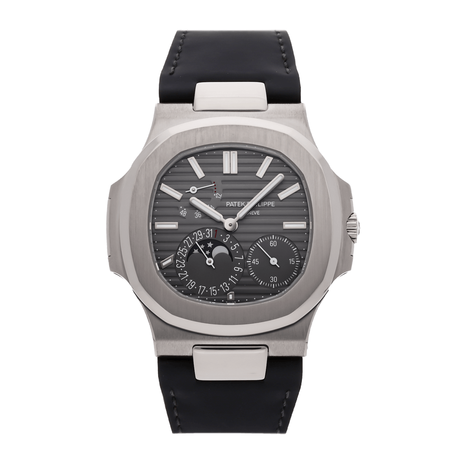 The Nautilus family features a range of complications including moonphase, power reserve, annual calendar, chronograph, dual time, and perpetual calendar — offering something for every collector.