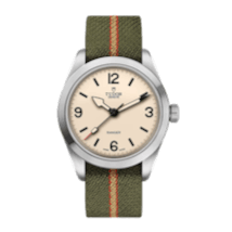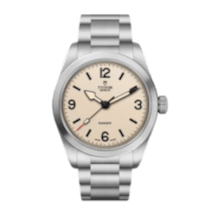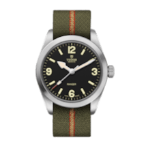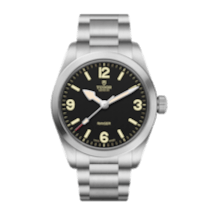 The Tudor Ranger blends vintage field watch aesthetics with modern mechanical performance. Drawing on the brand's connection to the 1952 British North Greenland Expedition, this contemporary reissue features a 39mm satin-brushed stainless steel case, domed matte black dial, and the in-house Caliber MT5402, a COSC-certified movement offering a robust 70-hour power reserve.