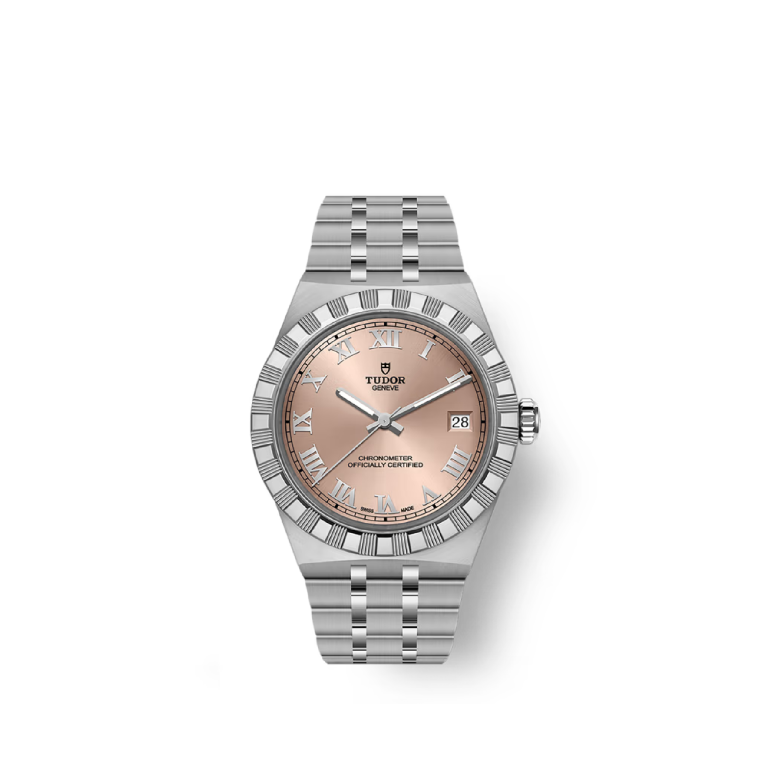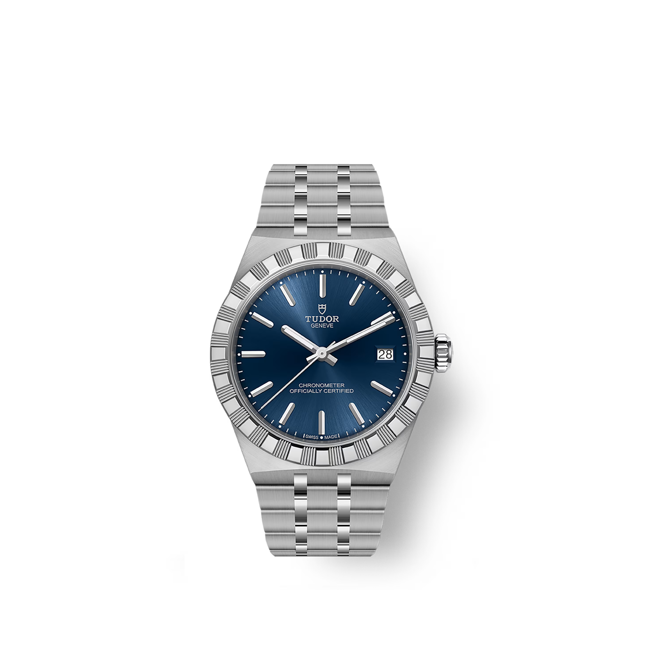 The Tudor Royal collection revives the brand's historical use of the "Royal" name, dating back to the mid-20th century, and reimagines it for the contemporary wearer. With a fixed notched bezel featuring alternating polished and grooved surfaces, integrated bracelet construction, and automatic calibers, Tudor Royal watches occupy the space between formal refinement and daily wearability.